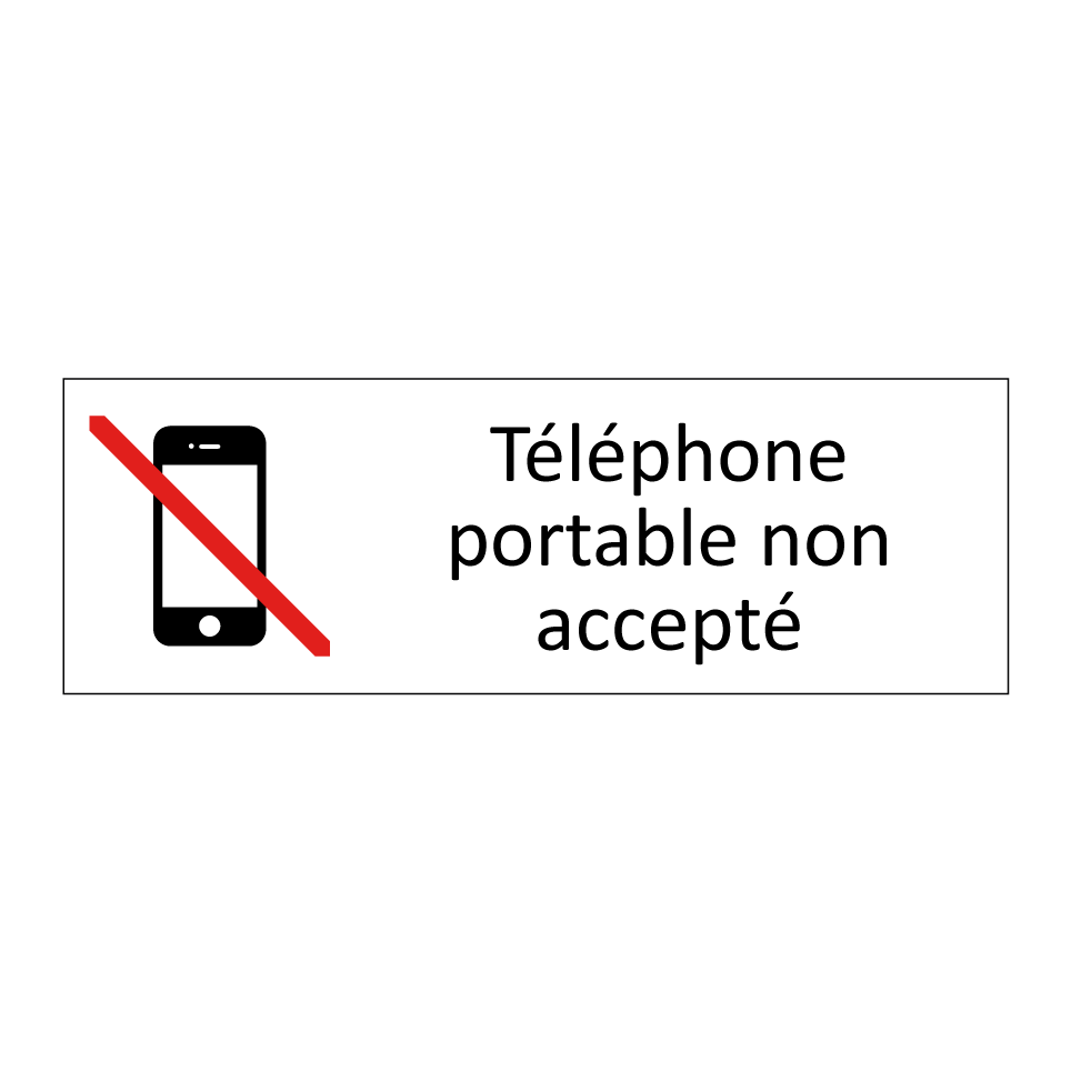 Panneau d'information avec le texte Téléphone portable non accepté et une symbolique claire pour une meilleure visibilité.