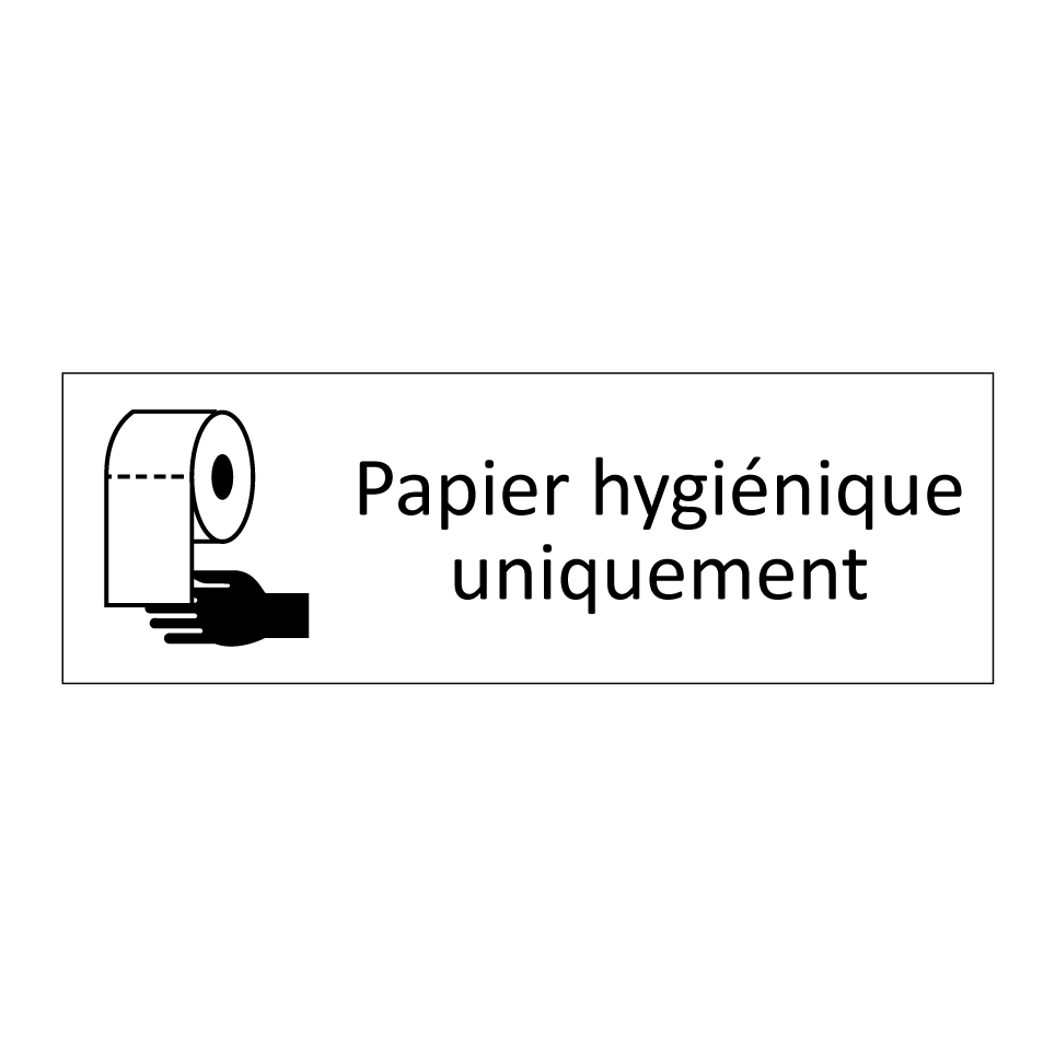 Panneau d'information avec le texte Papier hygiénique uniquement et une symbolique claire pour une meilleure visibilité.