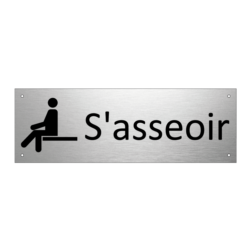 Panneau d'information avec le texte S'asseoir et une symbolique claire pour une meilleure visibilité.