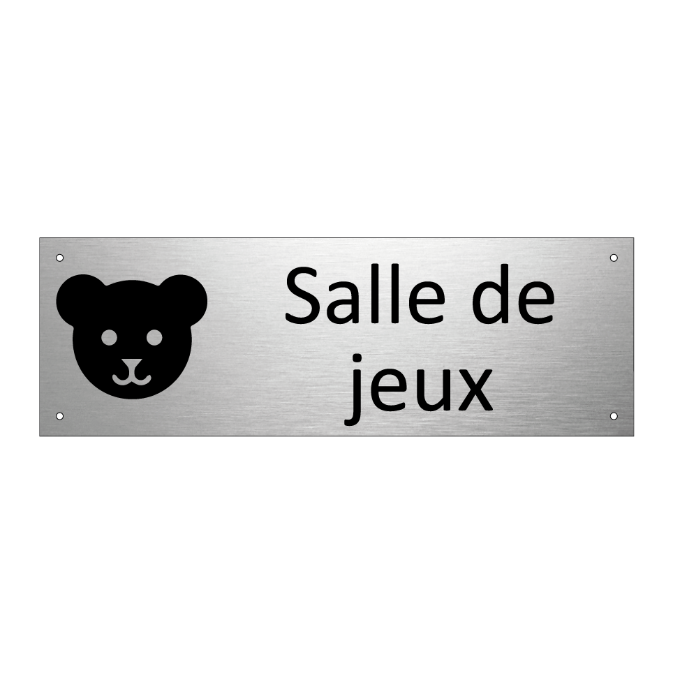 Panneau d'information avec le texte Salle de jeux et une symbolique claire pour une meilleure visibilité.