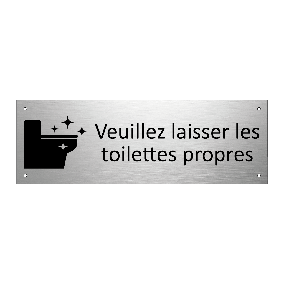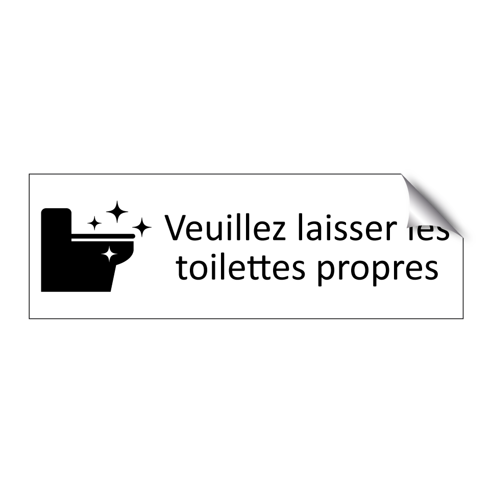 Panneau d'information avec le texte Veuillez laisser les toilettes propres et une symbolique claire pour une meilleure visibilité.
