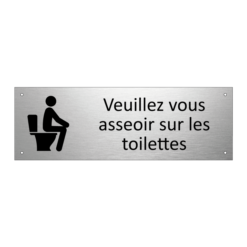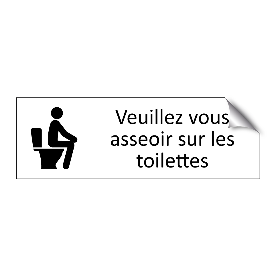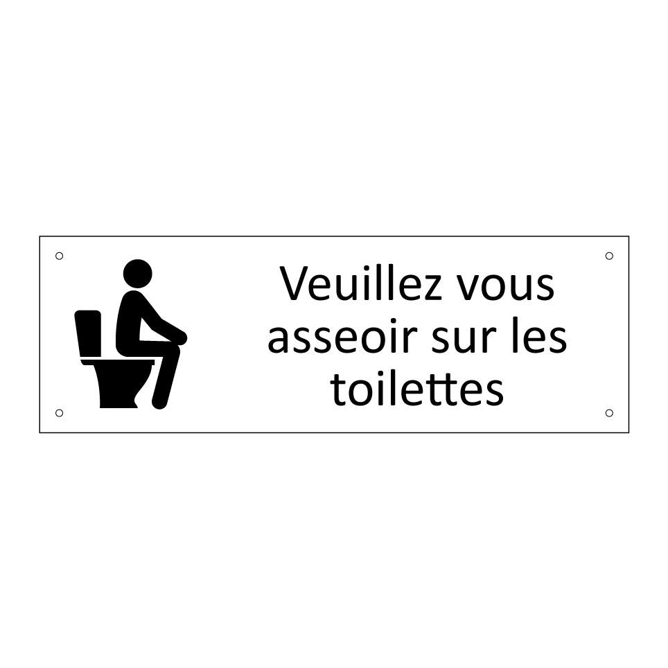 Panneau d'information avec le texte Veuillez vous asseoir sur les toilettes et une symbolique claire pour une meilleure visibilité.