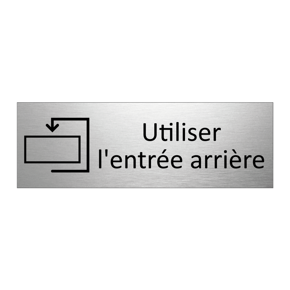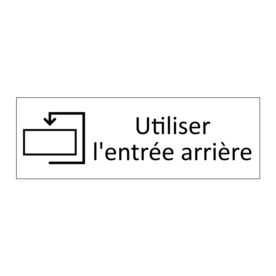 Panneau d'information avec le texte Utiliser l'entrée arrière et une symbolique claire pour une meilleure visibilité.