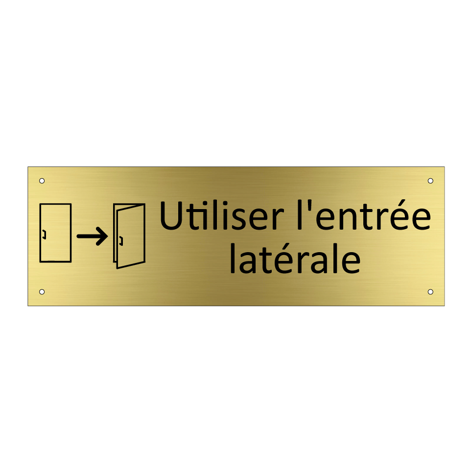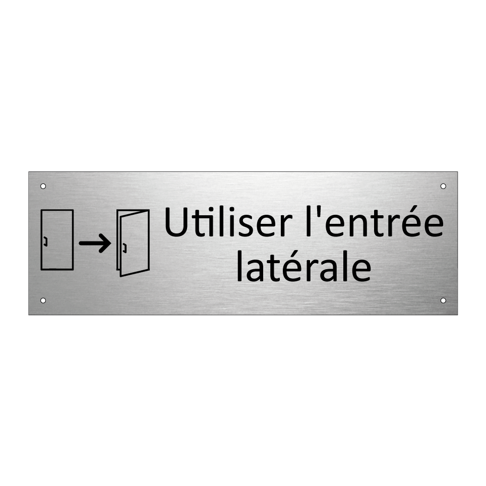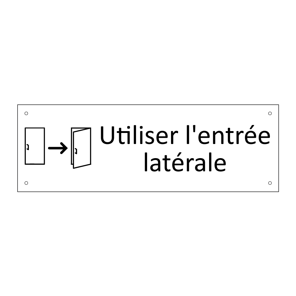 Panneau d'information avec le texte Utiliser l'entrée latérale et une symbolique claire pour une meilleure visibilité.