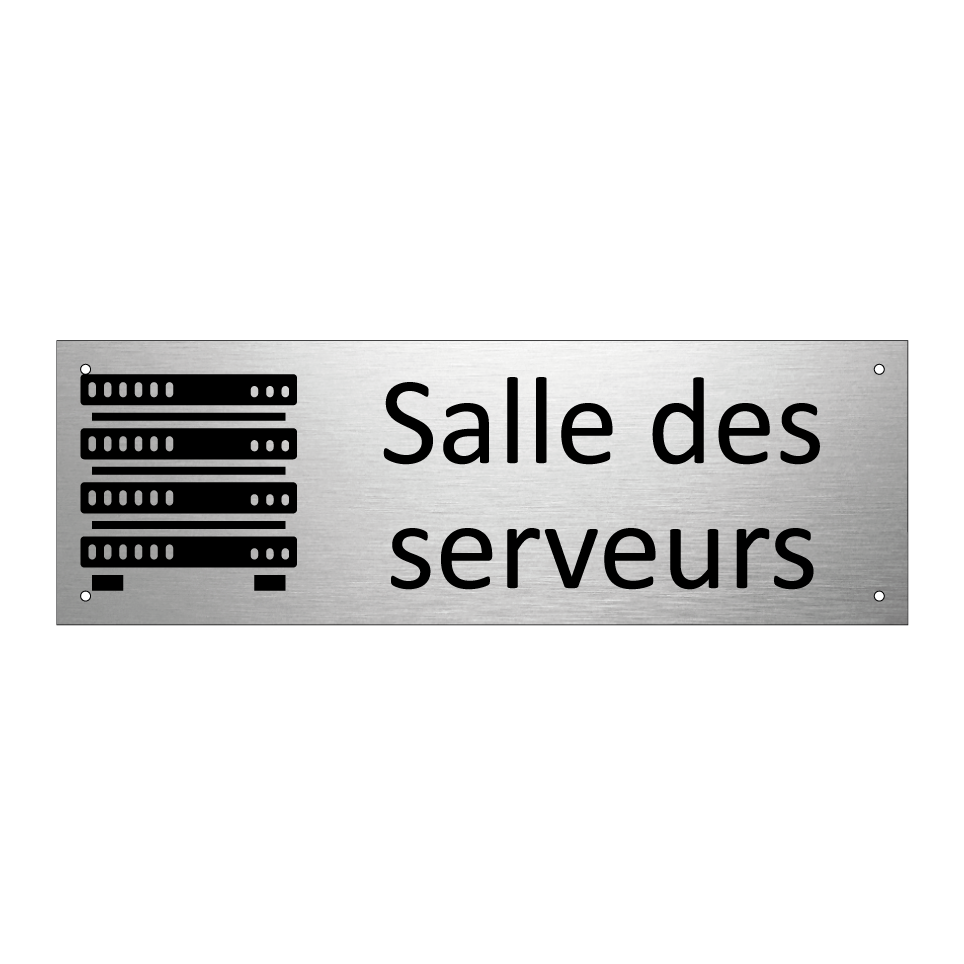 Panneau d'information avec le texte Salle des serveurs et une symbolique claire pour une meilleure visibilité.
