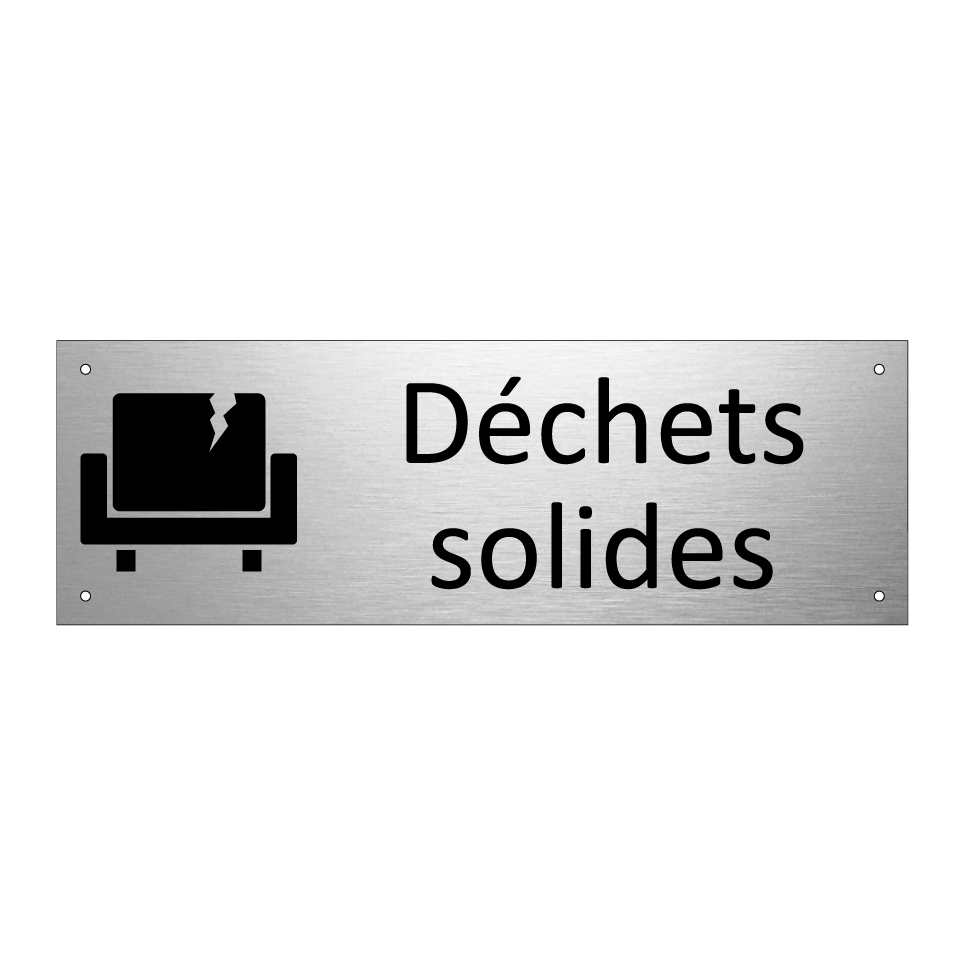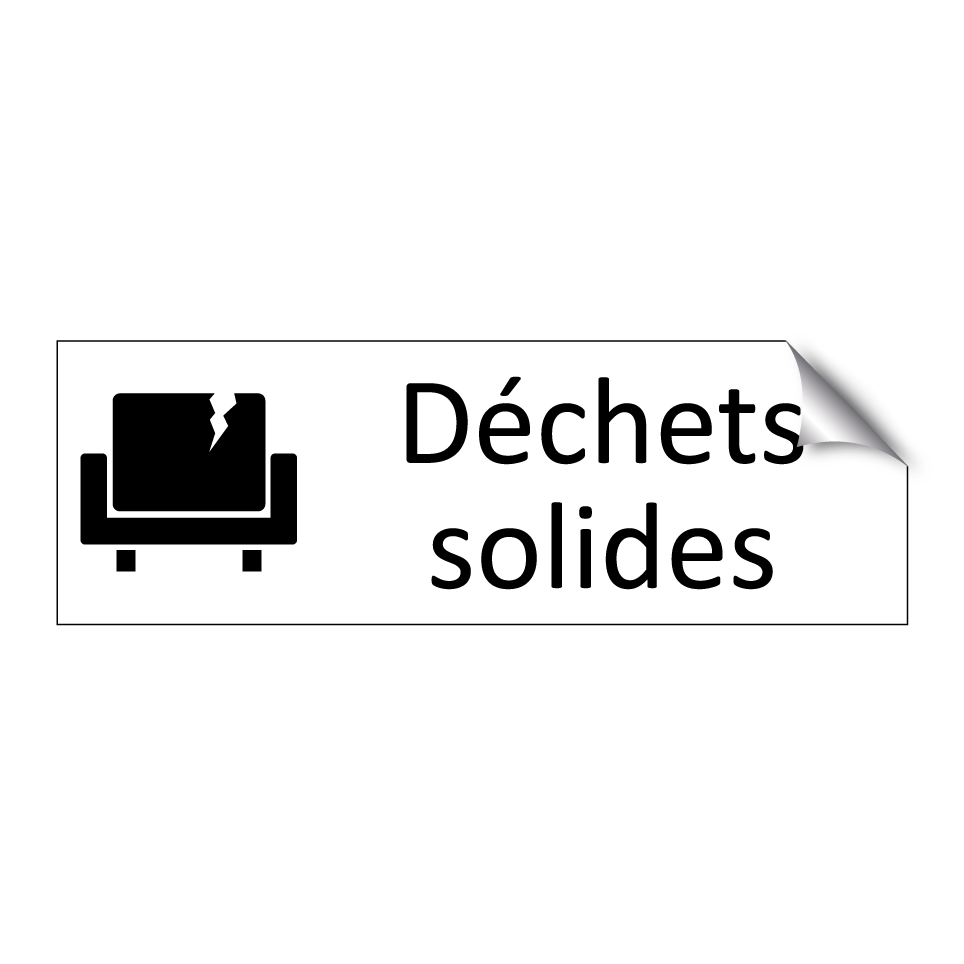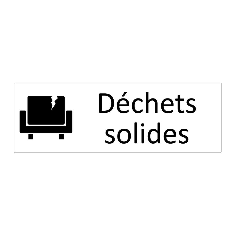 Panneau d'information avec le texte Déchets solides et une symbolique claire pour une meilleure visibilité.