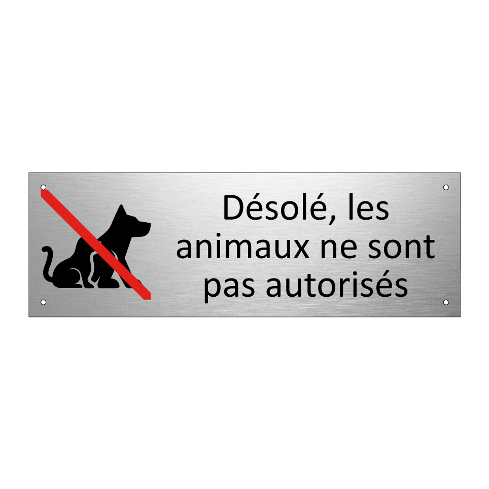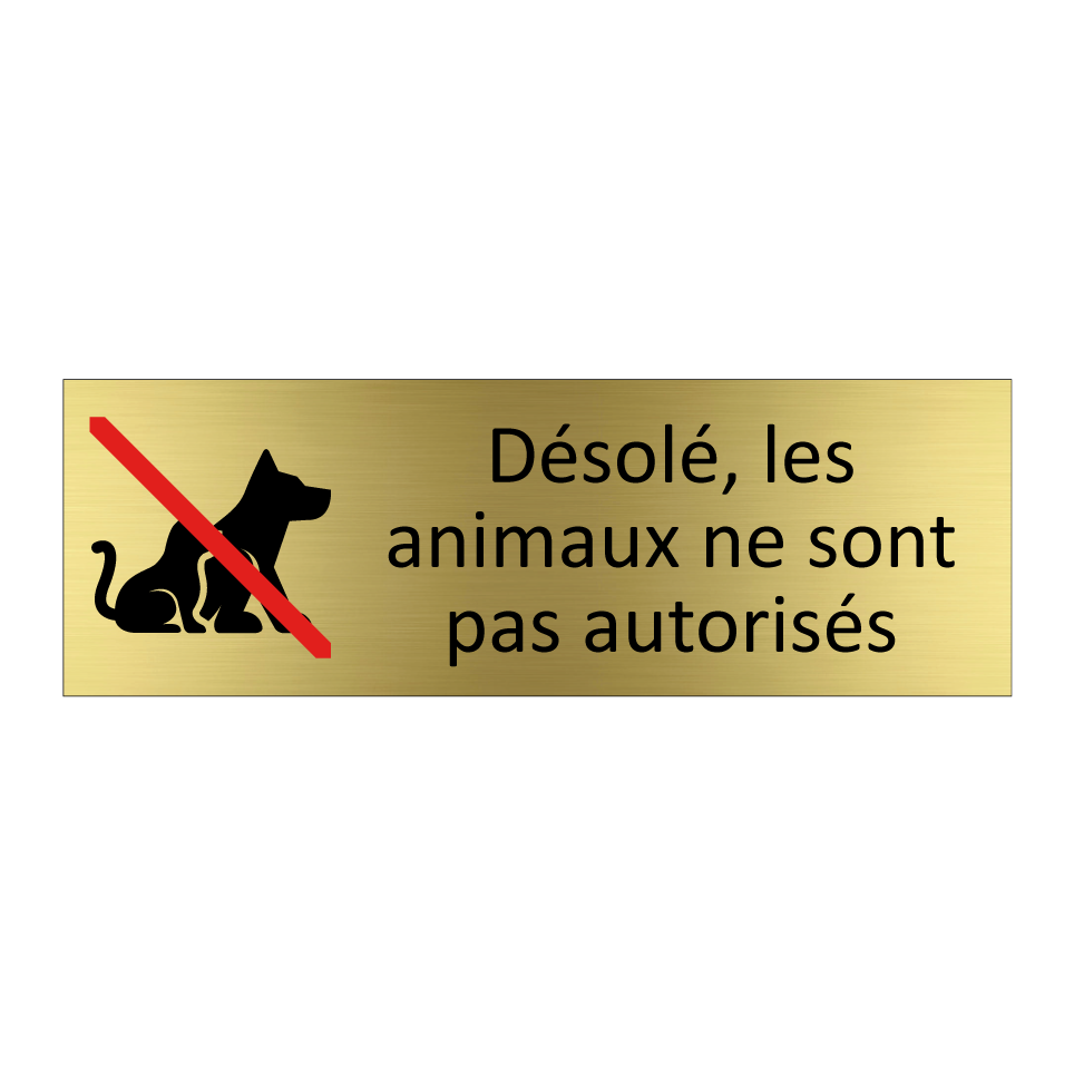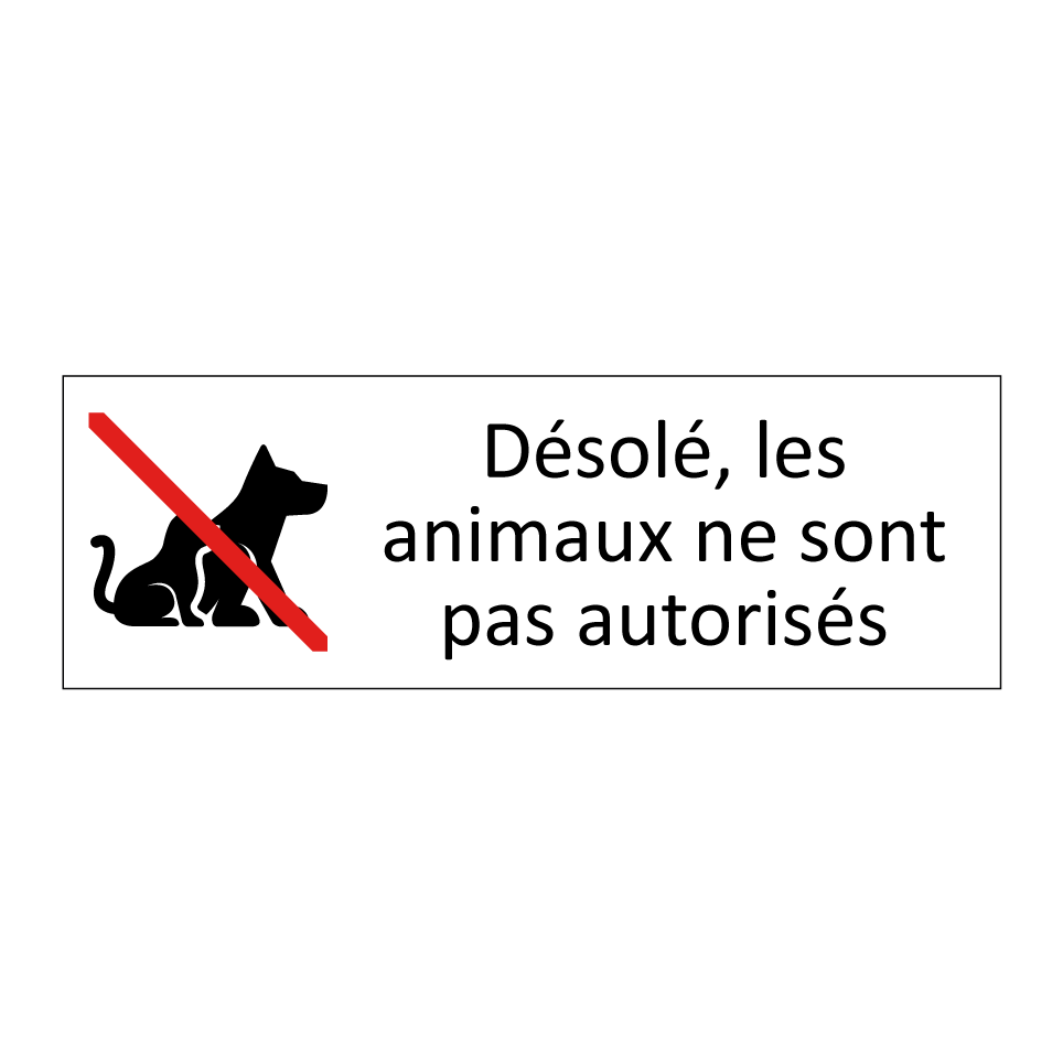 Panneau d'information avec le texte Désolé, les animaux ne sont pas autorisés et une symbolique claire pour une meilleure visibilité.