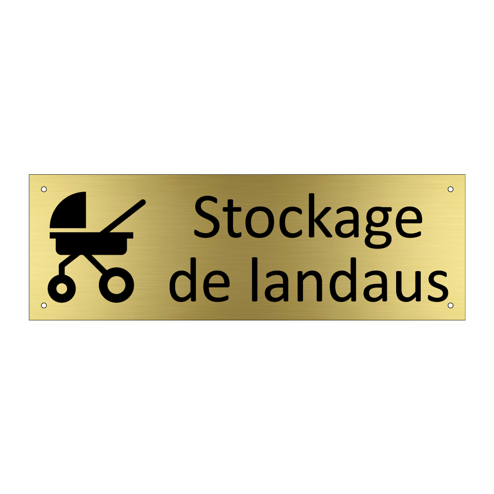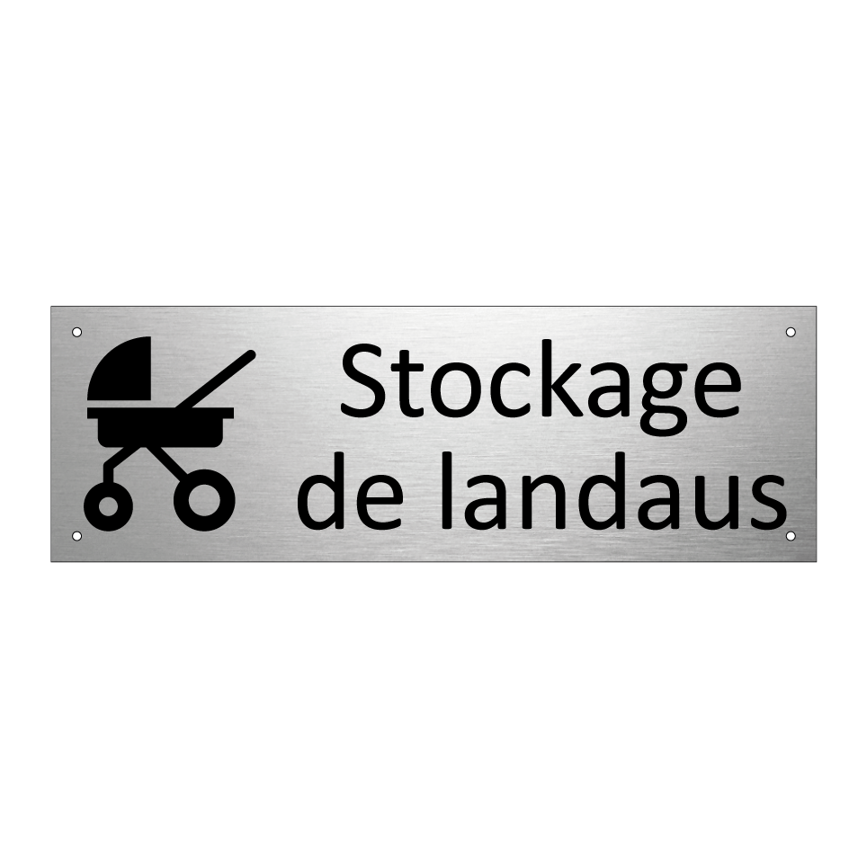 Panneau d'information avec le texte Stockage de landaus et une symbolique claire pour une meilleure visibilité.