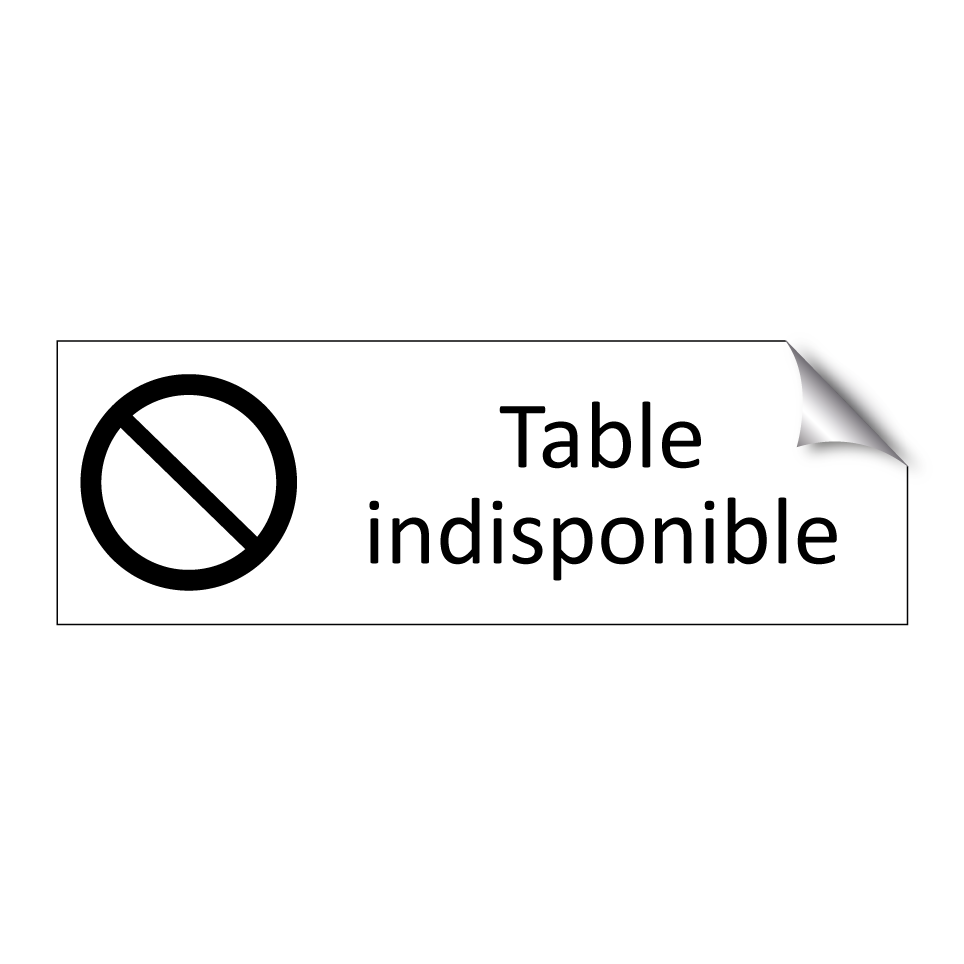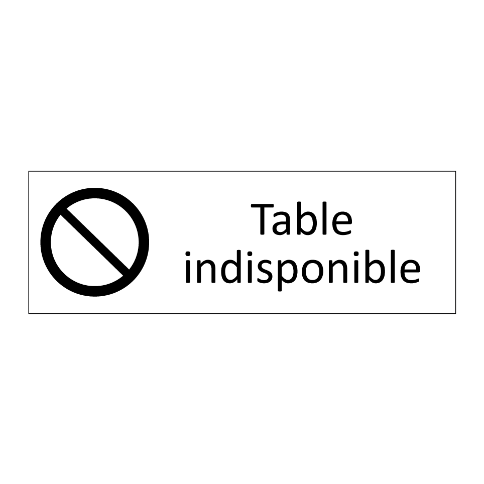 Panneau d'information avec le texte Table indisponible et une symbolique claire pour une meilleure visibilité.
