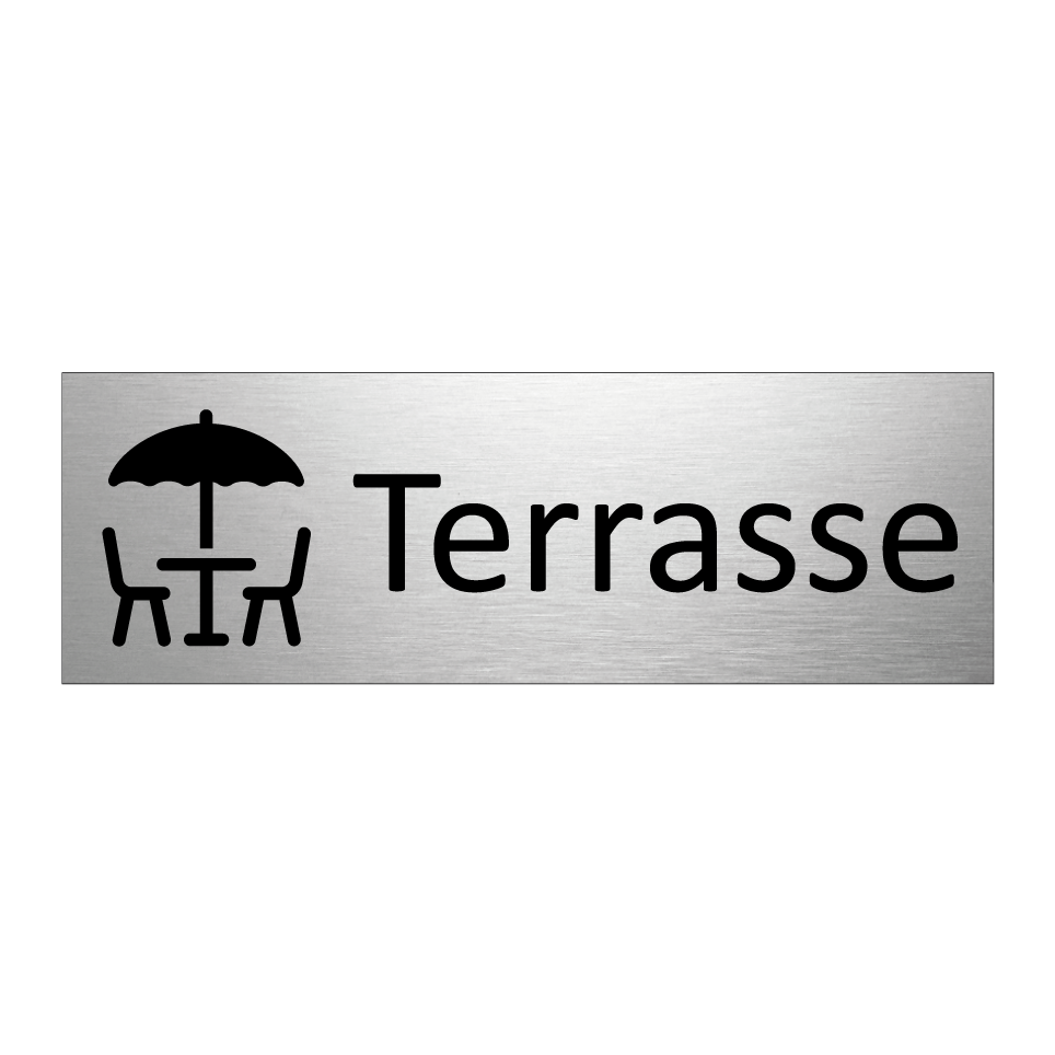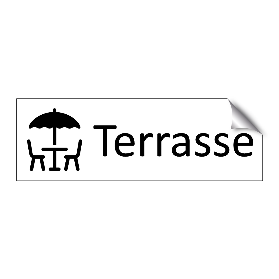 Panneau d'information avec le texte Terrasse et une symbolique claire pour une meilleure visibilité.