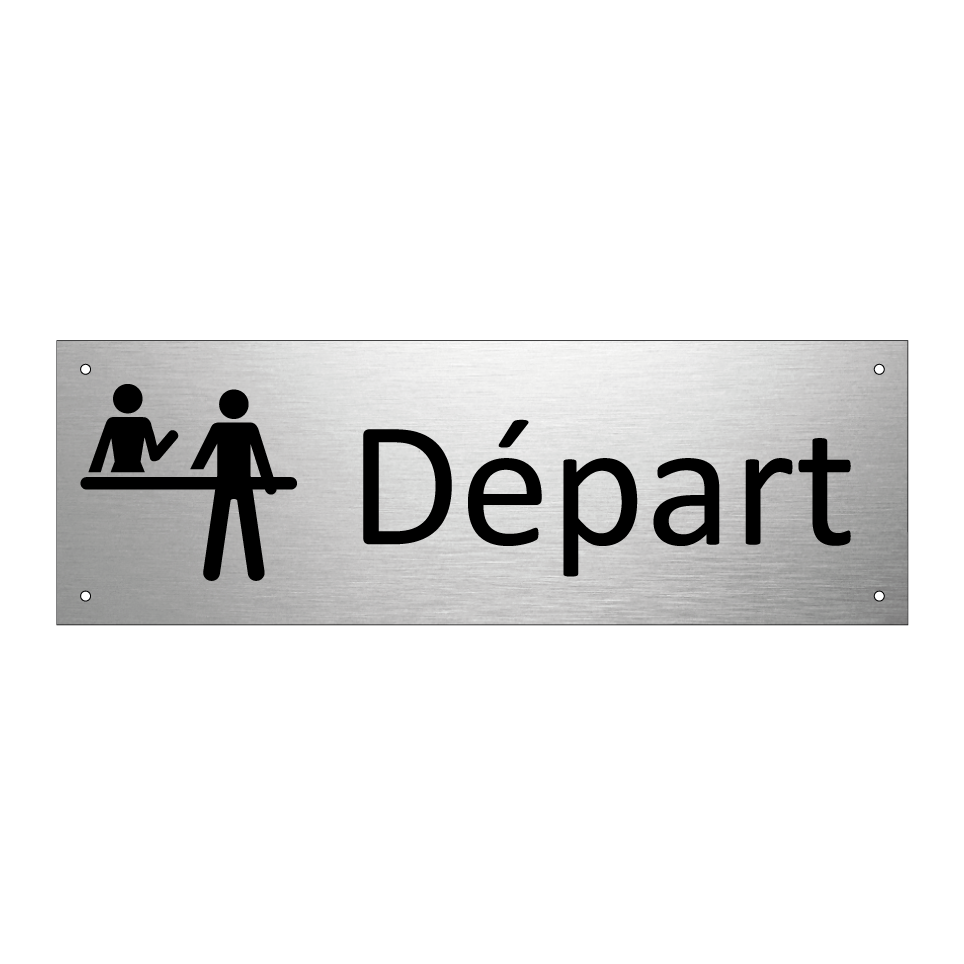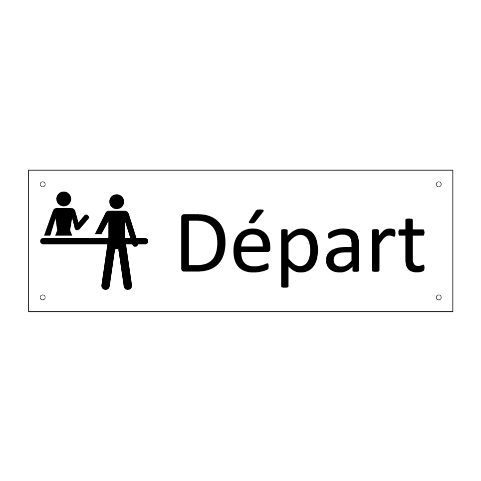 Panneau d'information avec le texte Départ et une symbolique claire pour une meilleure visibilité.