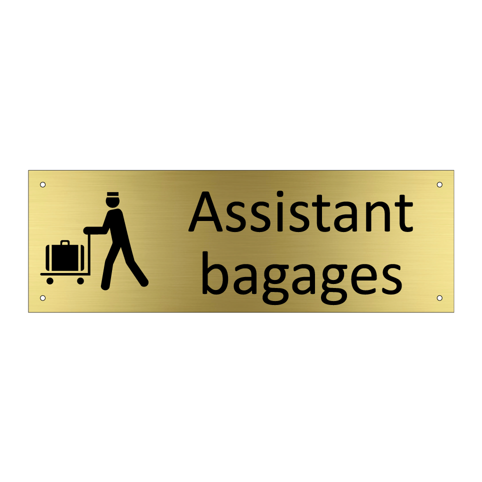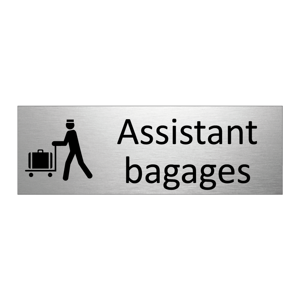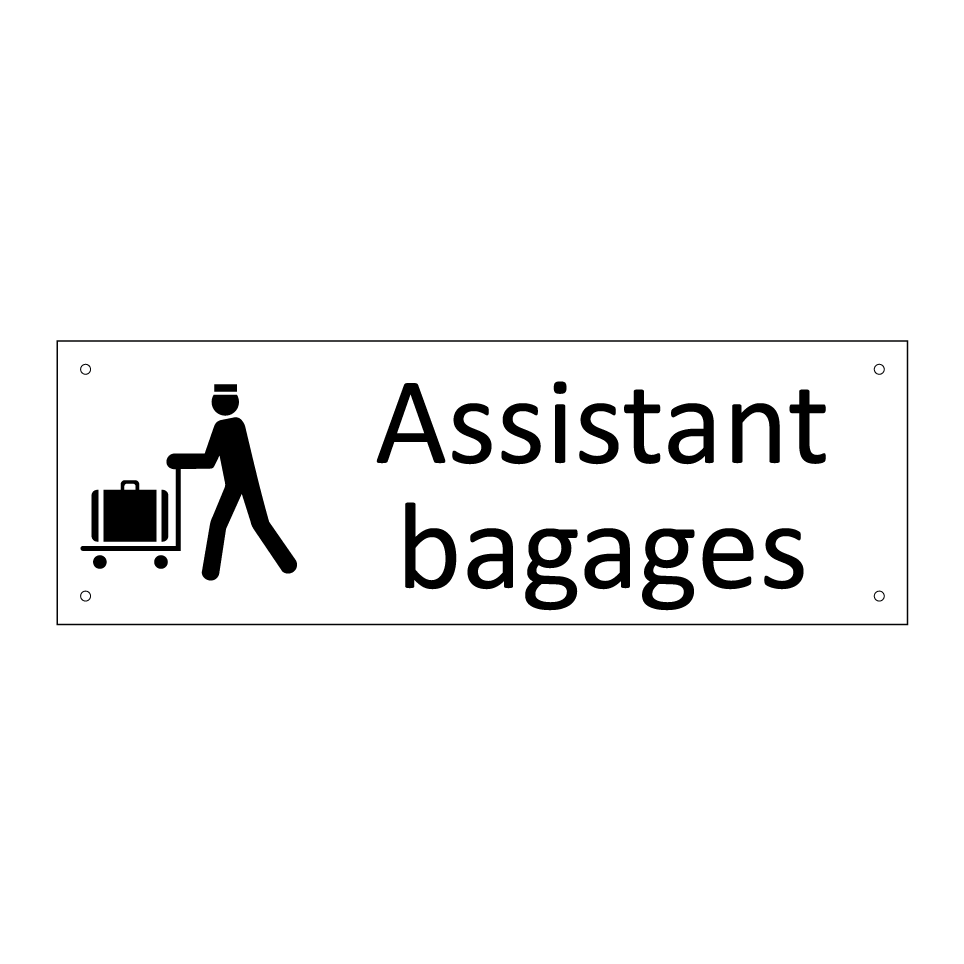Panneau d'information avec le texte Assistant bagages et une symbolique claire pour une meilleure visibilité.