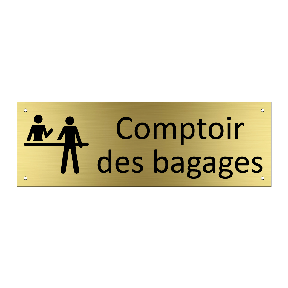Panneau d'information avec le texte Comptoir des bagages et une symbolique claire pour une meilleure visibilité.