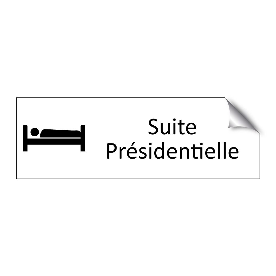 Panneau d'information avec le texte Suite Présidentielle et une symbolique claire pour une meilleure visibilité.