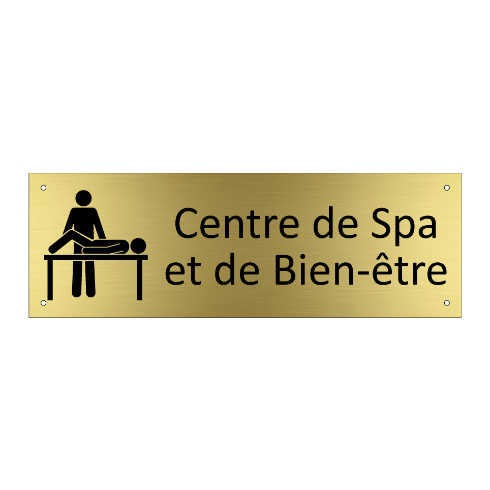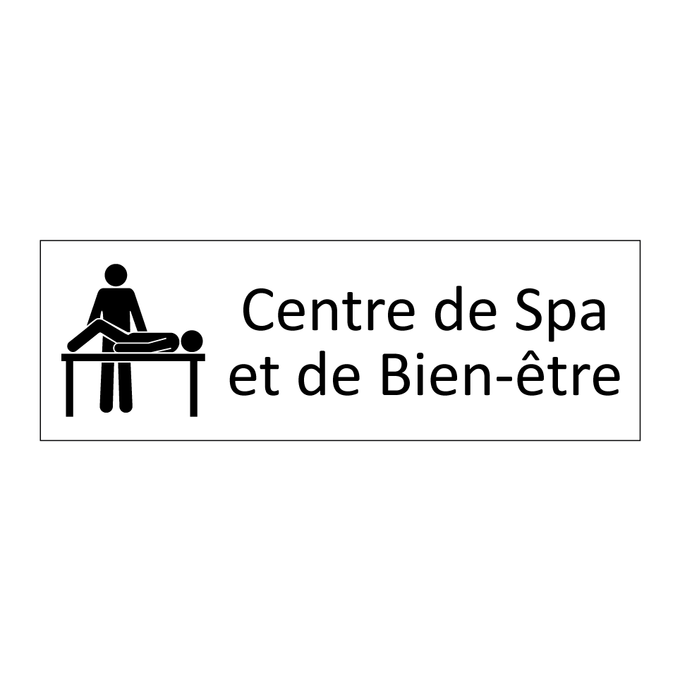 Panneau d'information avec le texte Centre de Spa et de Bien-être et une symbolique claire pour une meilleure visibilité.
