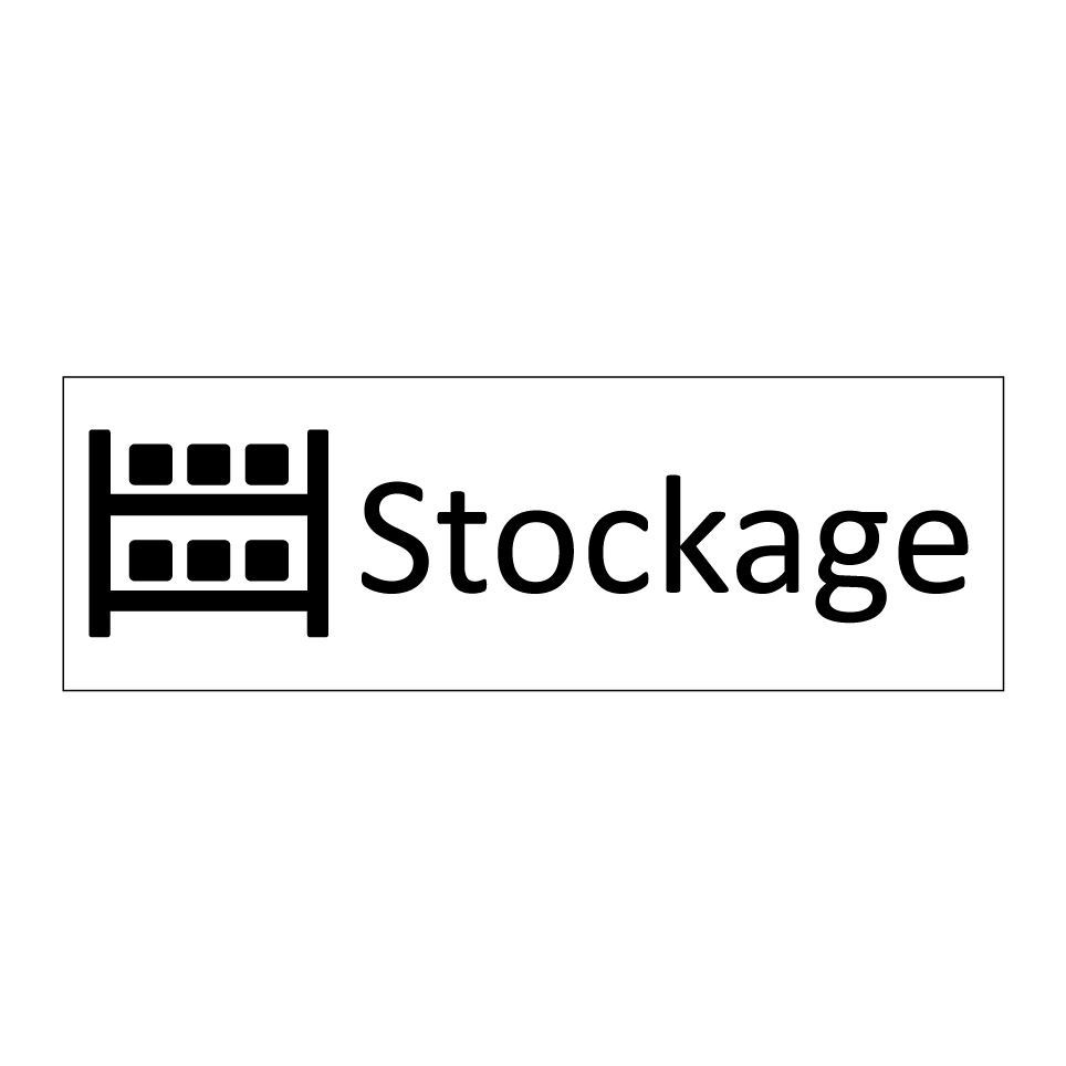 Panneau d'information avec le texte Stockage et une symbolique claire pour une meilleure visibilité.