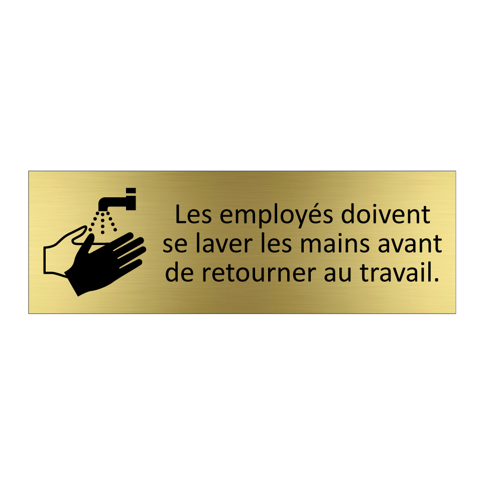 Panneau d'information avec le texte Les employés doivent se laver les mains avant de retourner au travail. et une symbolique claire pour une meilleure visibilité.
