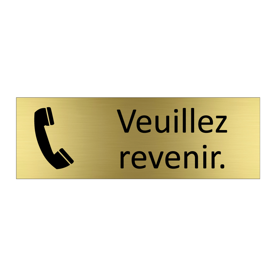 Panneau d'information avec le texte Veuillez revenir. et une symbolique claire pour une meilleure visibilité.