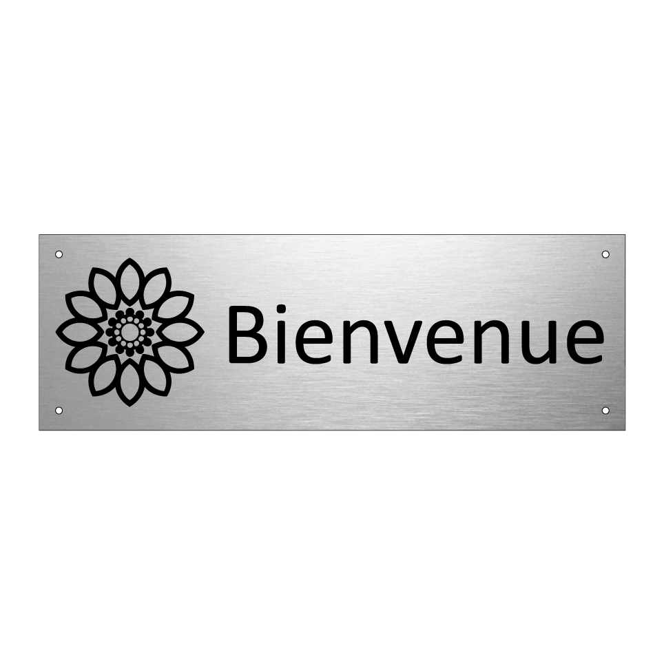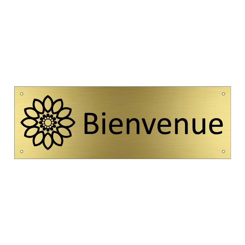 Panneau d'information avec le texte Bienvenue et une symbolique claire pour une meilleure visibilité.