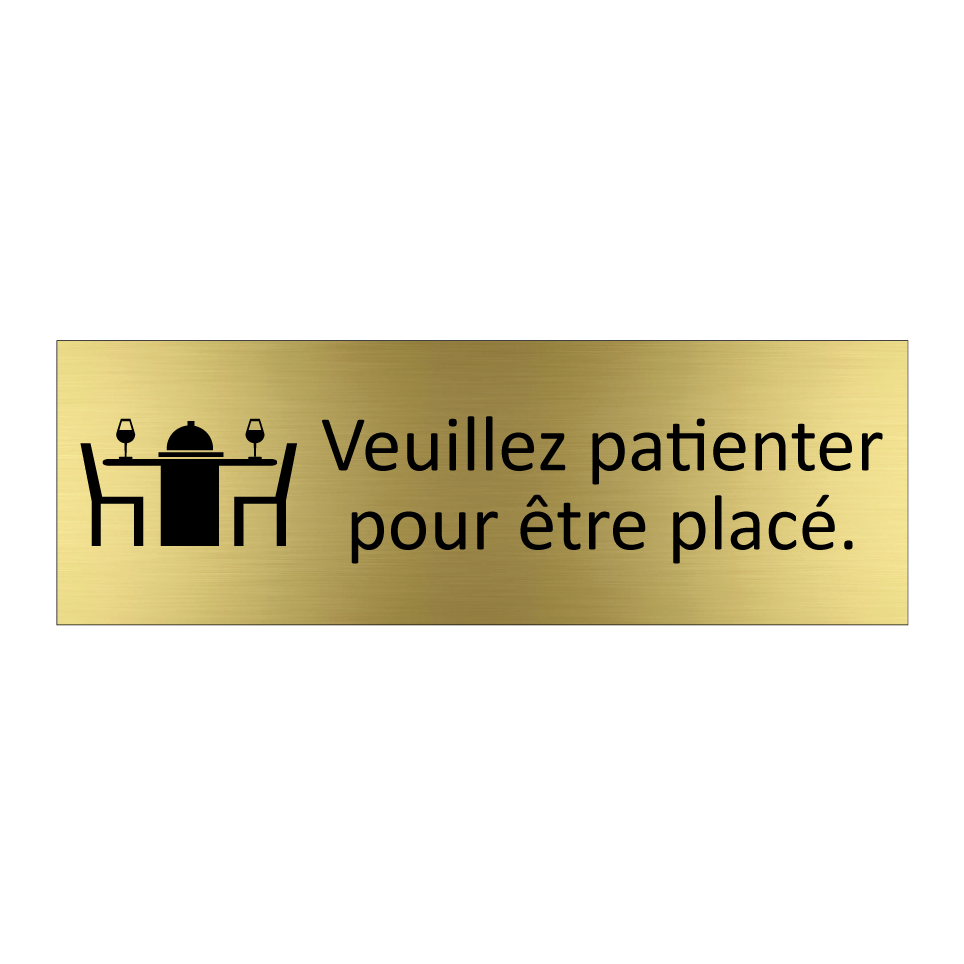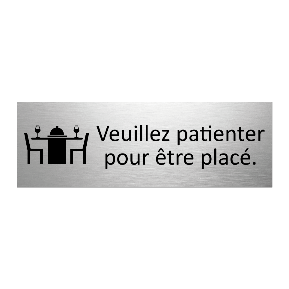 Panneau d'information avec le texte Veuillez patienter pour être placé. et une symbolique claire pour une meilleure visibilité.