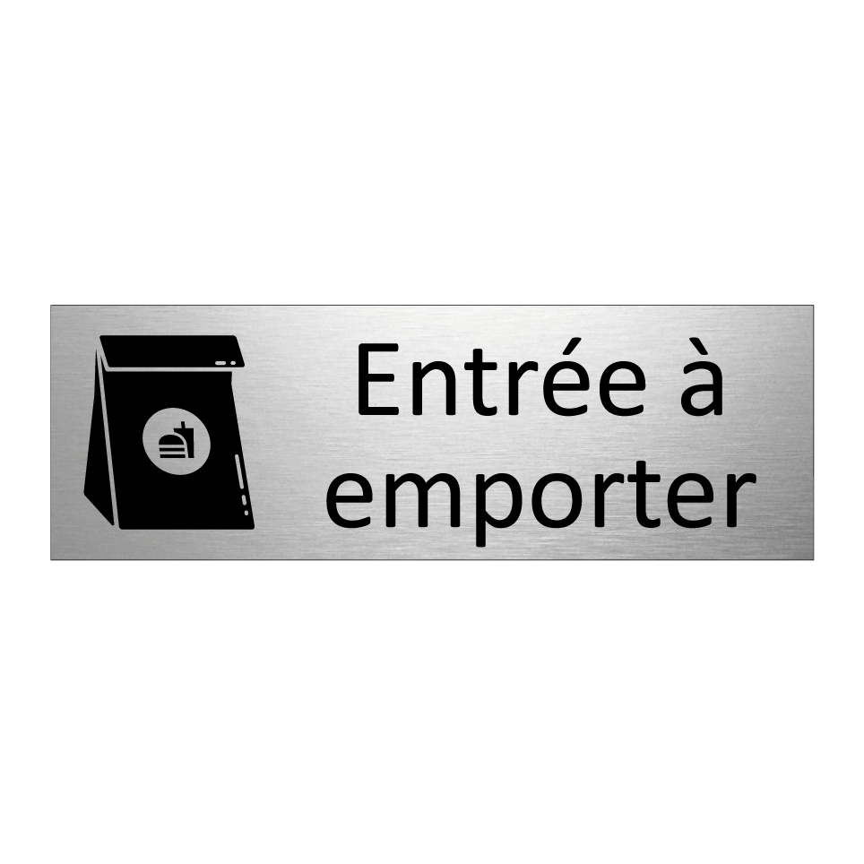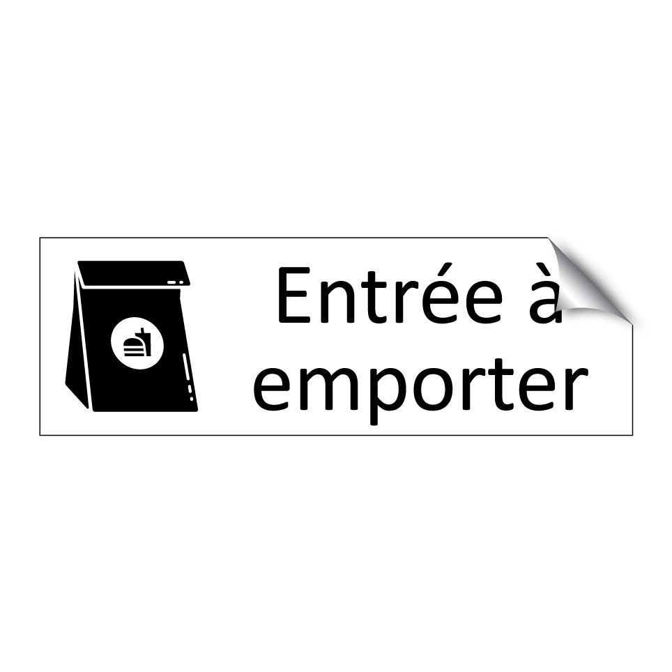Panneau d'information avec le texte Entrée à emporter et une symbolique claire pour une meilleure visibilité.