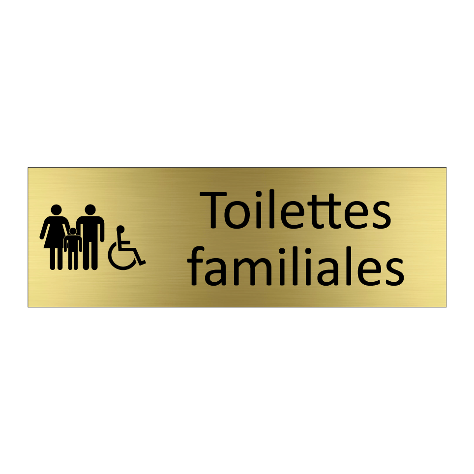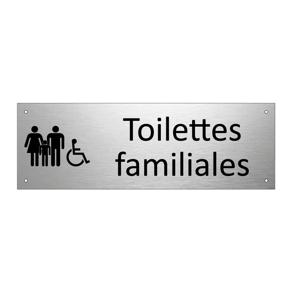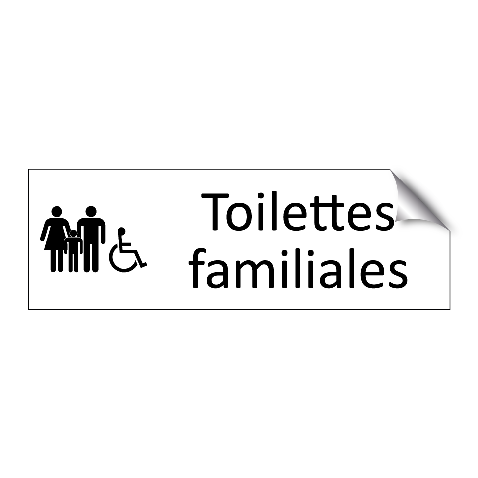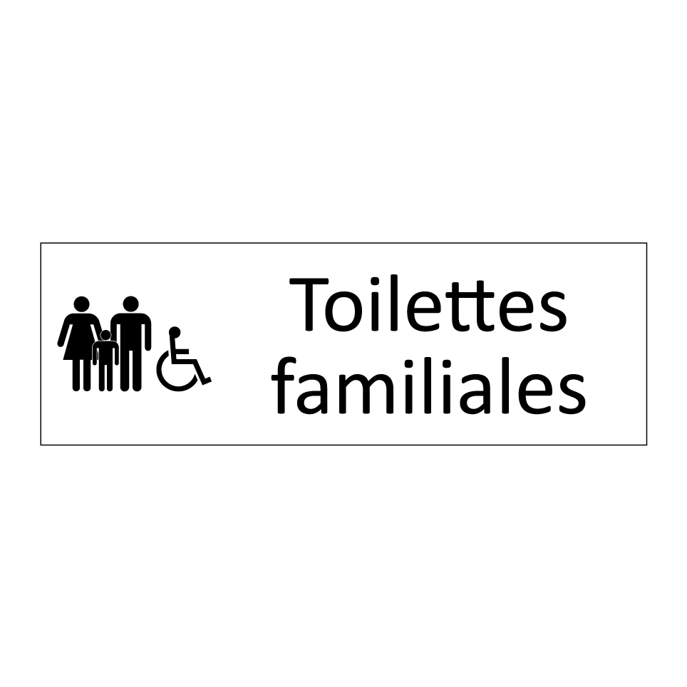 Panneau d'information avec le texte Toilettes familiales et une symbolique claire pour une meilleure visibilité.