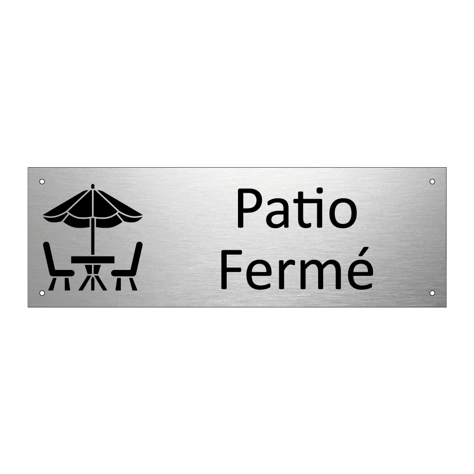 Panneau d'information avec le texte Patio Fermé et une symbolique claire pour une meilleure visibilité.