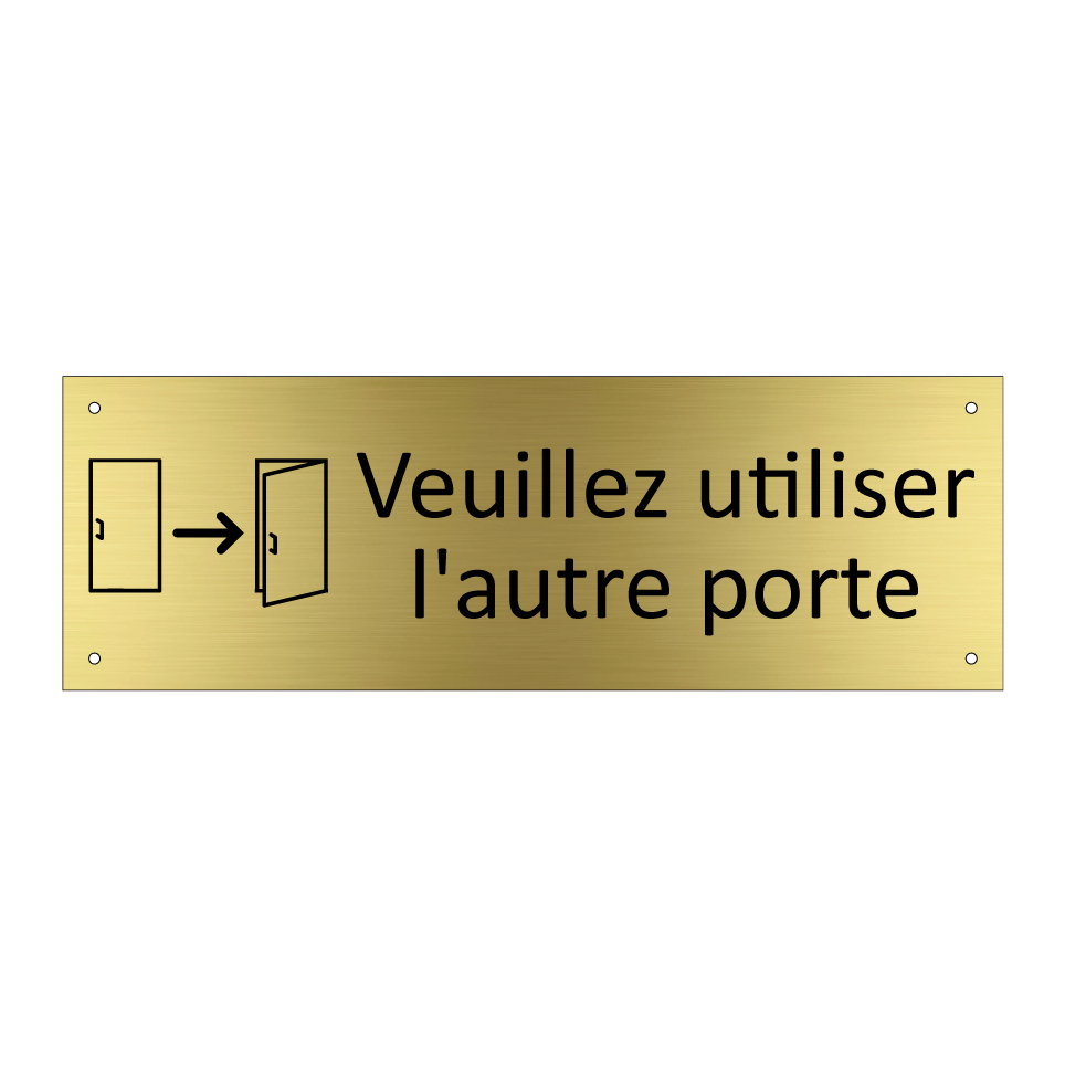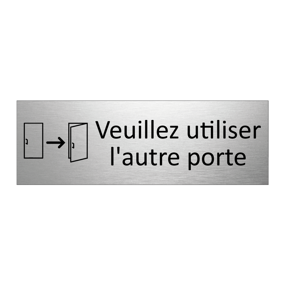 Panneau d'information avec le texte Veuillez utiliser l'autre porte et une symbolique claire pour une meilleure visibilité.