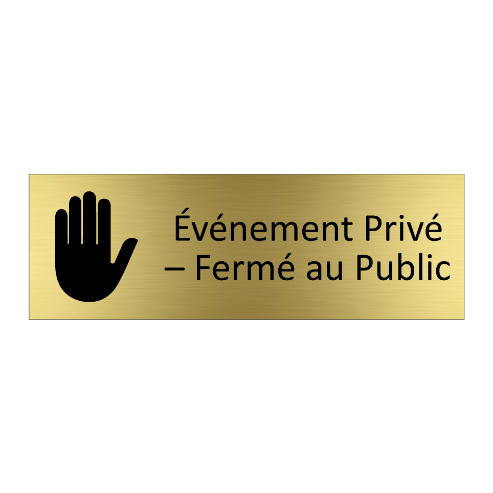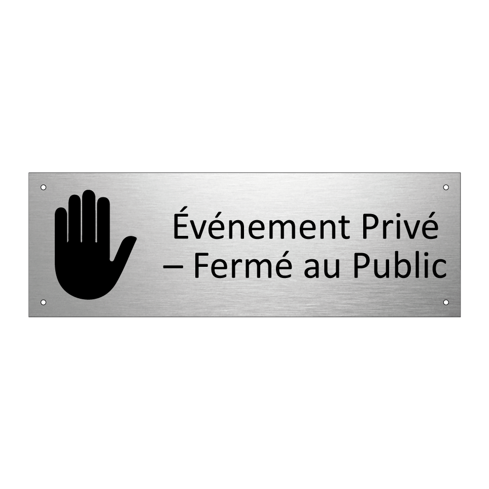 Panneau d'information avec le texte Événement Privé – Fermé au Public et une symbolique claire pour une meilleure visibilité.