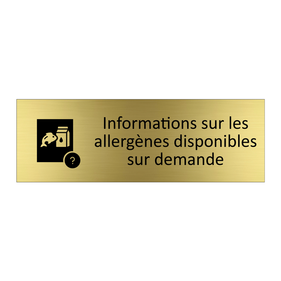 Panneau d'information avec le texte Informations sur les allergènes disponibles sur demande et une symbolique claire pour une meilleure visibilité.