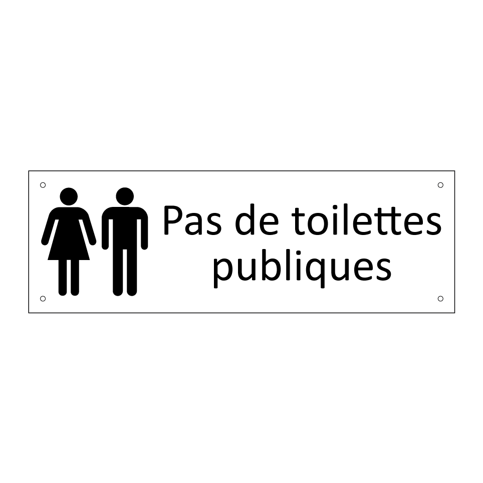 Panneau d'information avec le texte Pas de toilettes publiques et une symbolique claire pour une meilleure visibilité.