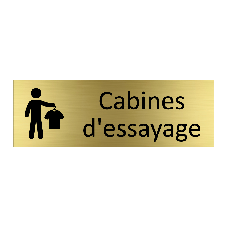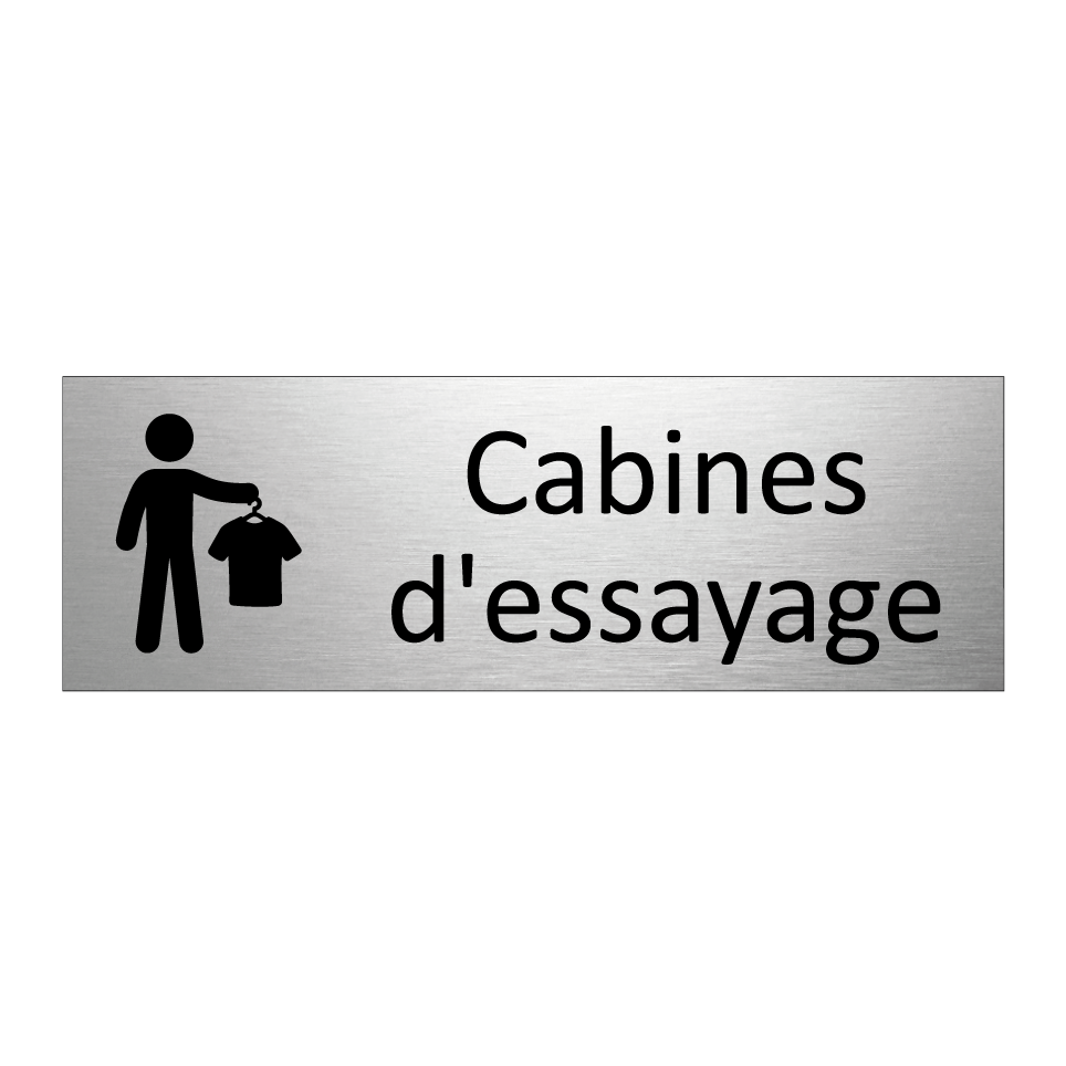 Panneau d'information avec le texte Cabines d'essayage et une symbolique claire pour une meilleure visibilité.