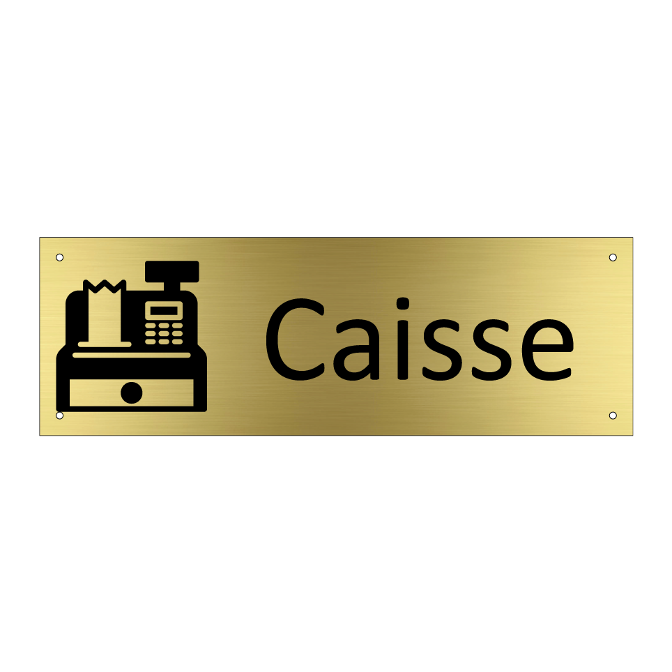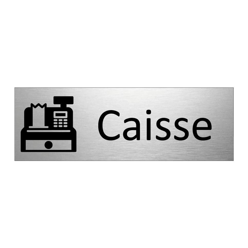 Panneau d'information avec le texte Caisse et une symbolique claire pour une meilleure visibilité.