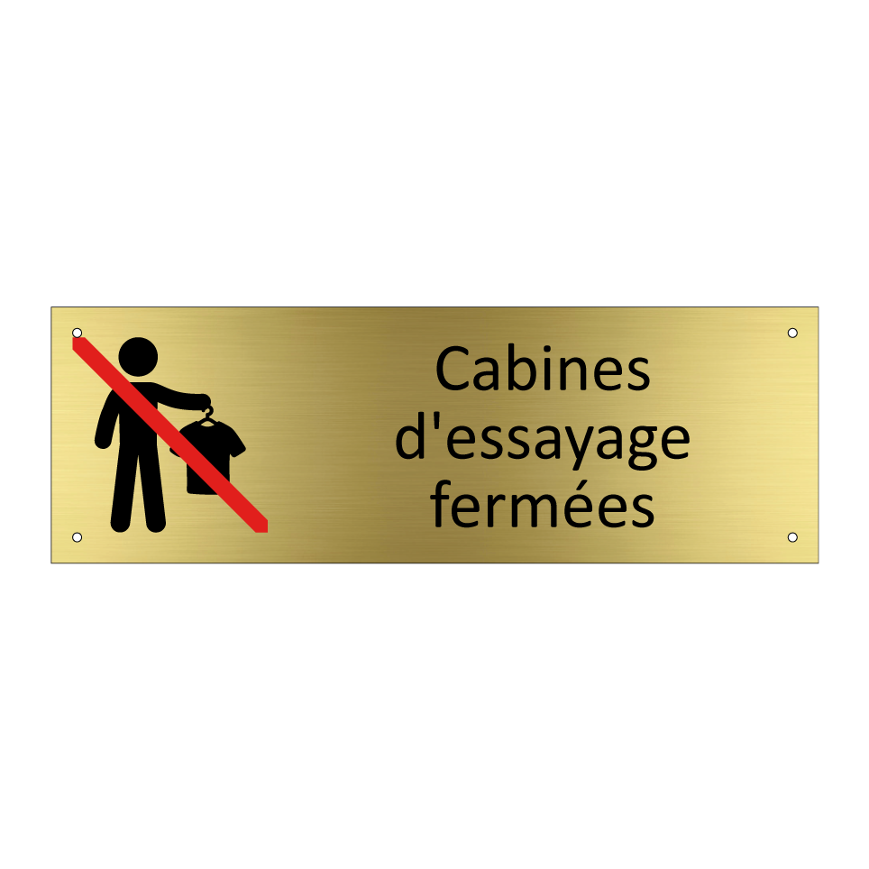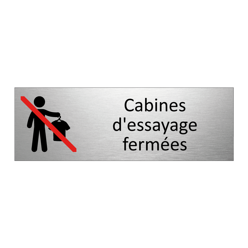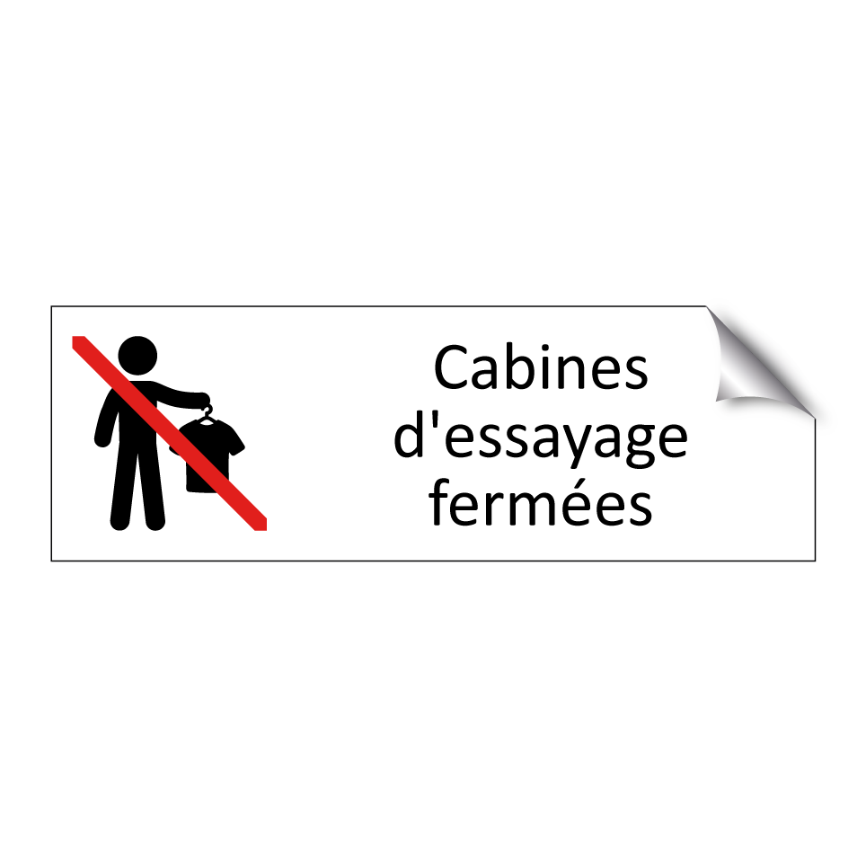 Panneau d'information avec le texte Cabines d'essayage fermées et une symbolique claire pour une meilleure visibilité.