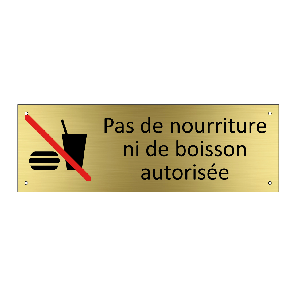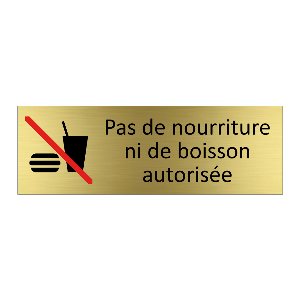 Panneau d'information avec le texte Pas de nourriture ni de boisson autorisée et une symbolique claire pour une meilleure visibilité.