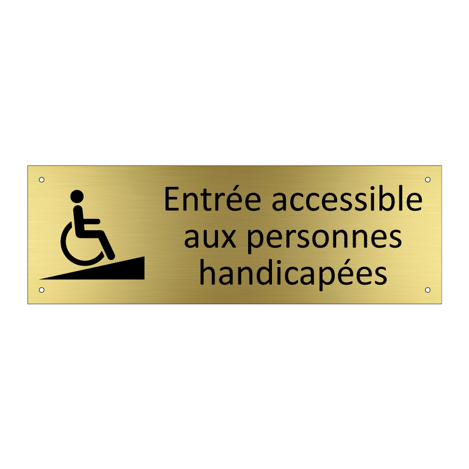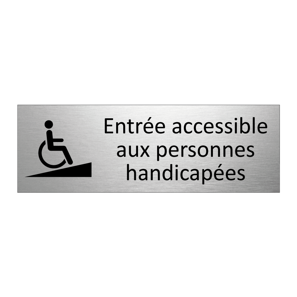 Panneau d'information avec le texte Entrée accessible aux personnes handicapées et une symbolique claire pour une meilleure visibilité.
