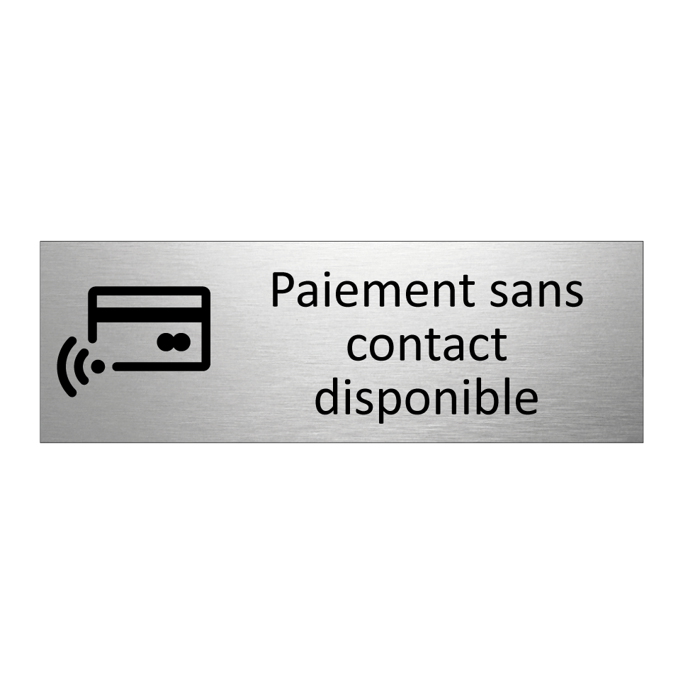 Panneau d'information avec le texte Paiement sans contact disponible et une symbolique claire pour une meilleure visibilité.