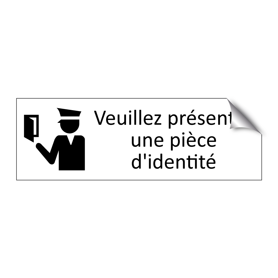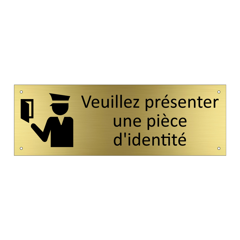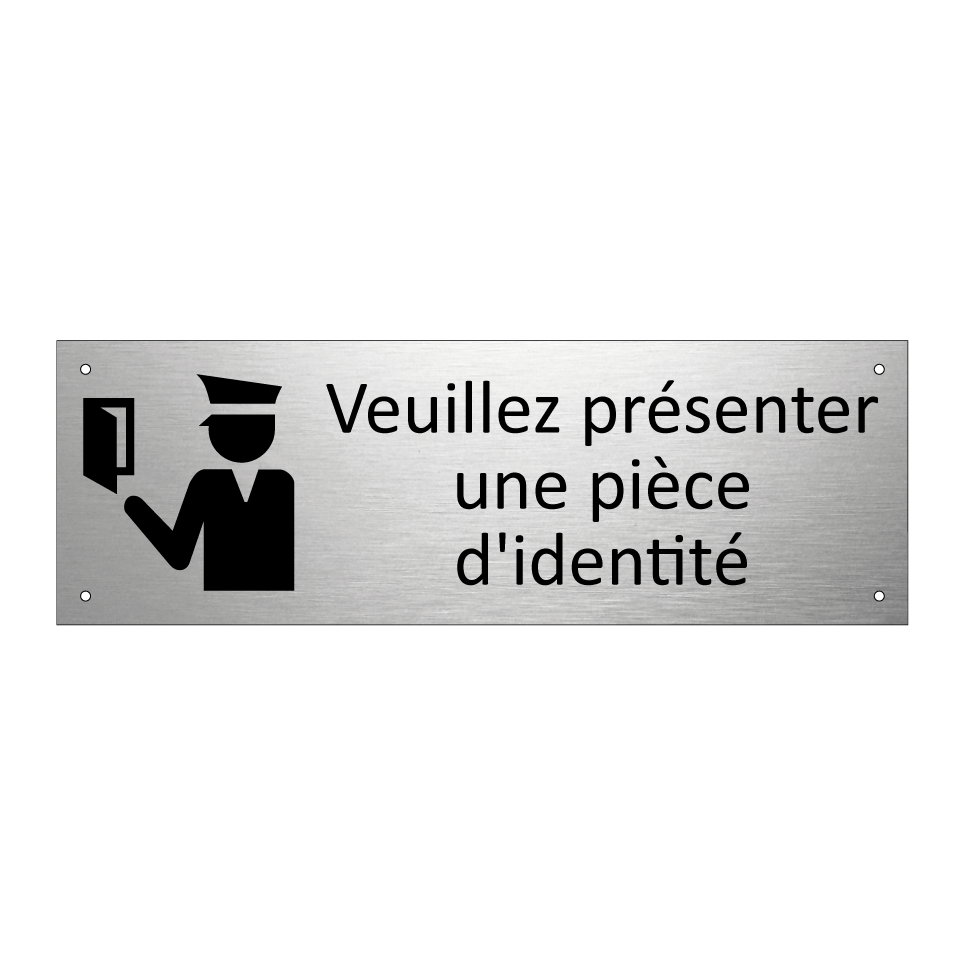 Panneau d'information avec le texte Veuillez présenter une pièce d'identité et une symbolique claire pour une meilleure visibilité.