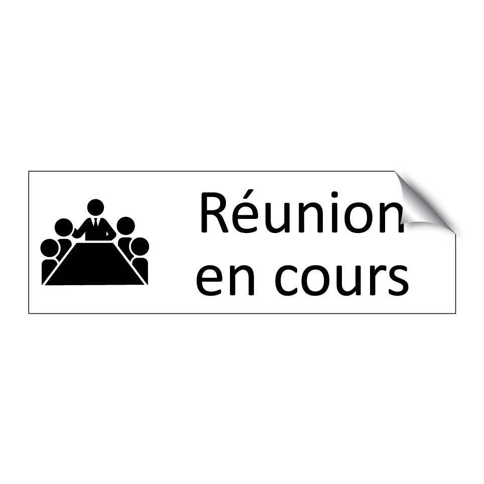 Panneau d'information avec le texte Réunion en cours et une symbolique claire pour une meilleure visibilité.