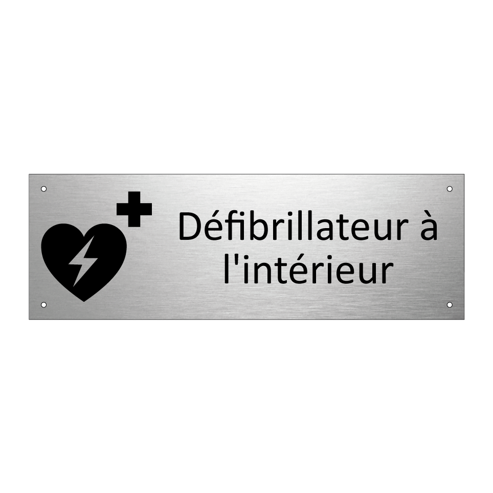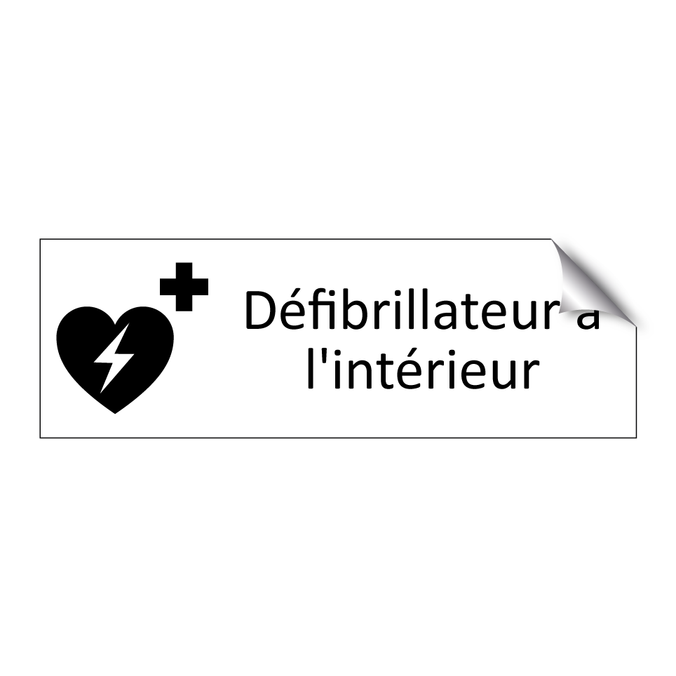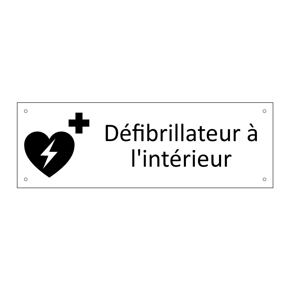 Panneau d'information avec le texte Défibrillateur à l'intérieur et une symbolique claire pour une meilleure visibilité.