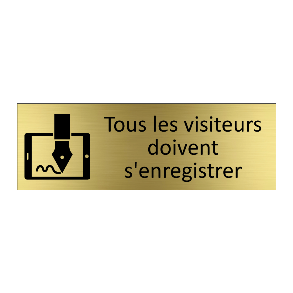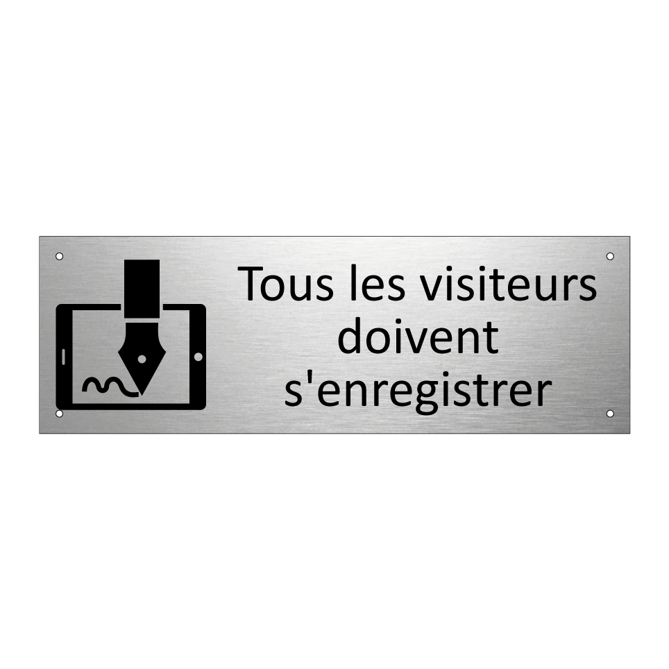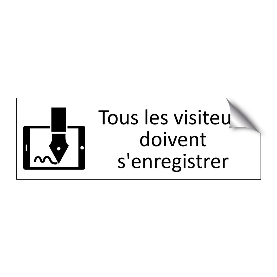 Panneau d'information avec le texte Tous les visiteurs doivent s'enregistrer et une symbolique claire pour une meilleure visibilité.