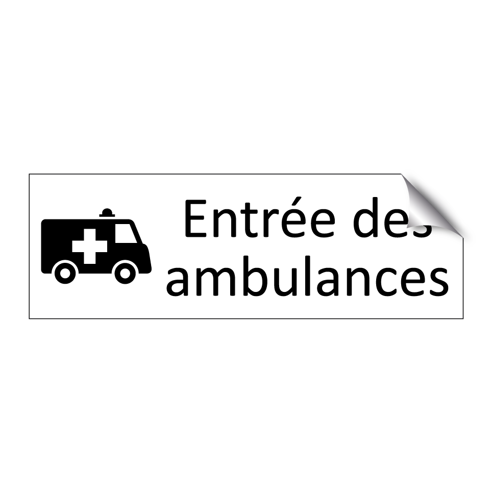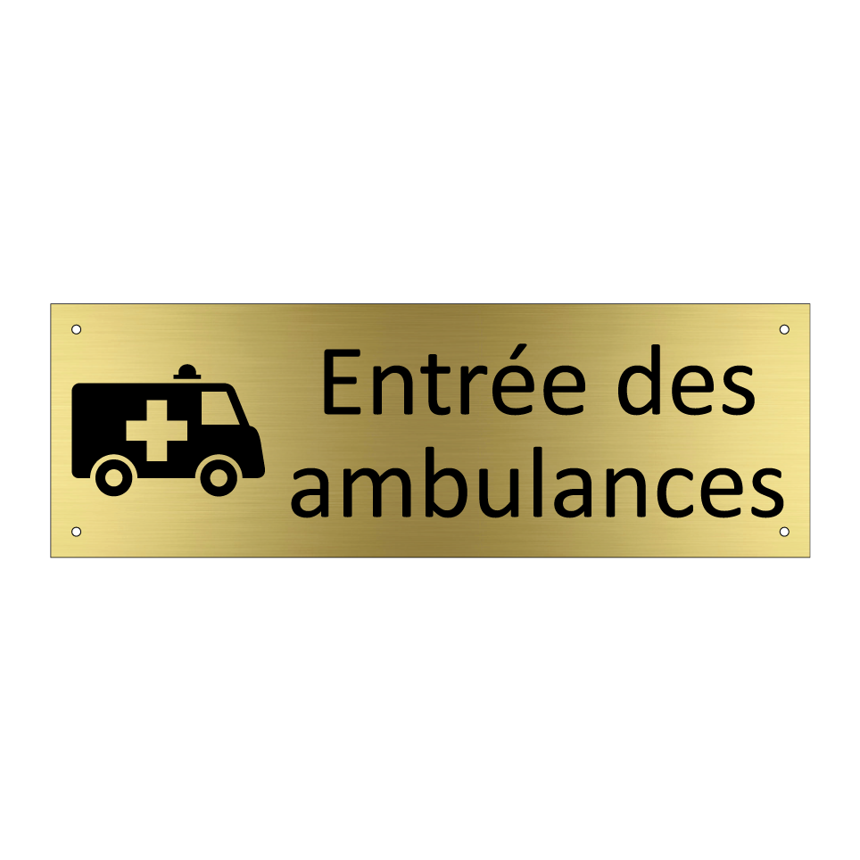 Panneau d'information avec le texte Entrée des ambulances et une symbolique claire pour une meilleure visibilité.