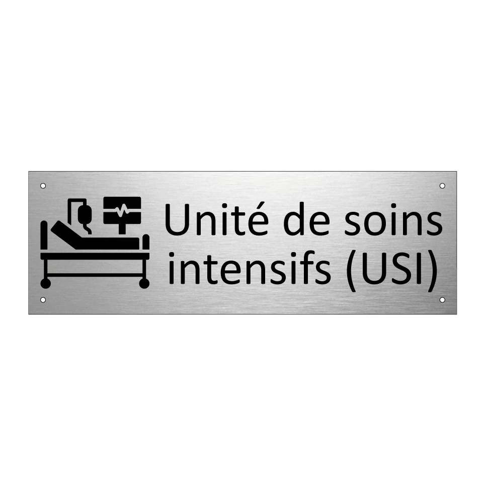 Panneau d'information avec le texte Unité de soins intensifs (USI) et une symbolique claire pour une meilleure visibilité.