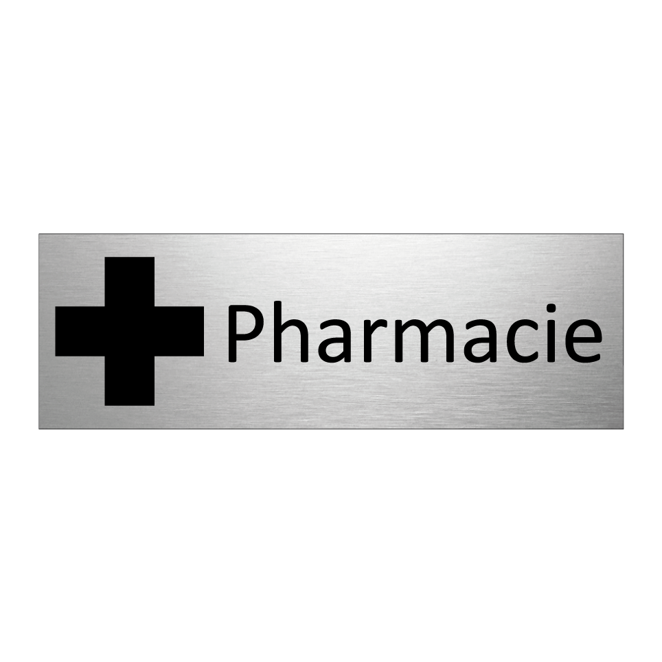 Panneau d'information avec le texte Pharmacie et une symbolique claire pour une meilleure visibilité.