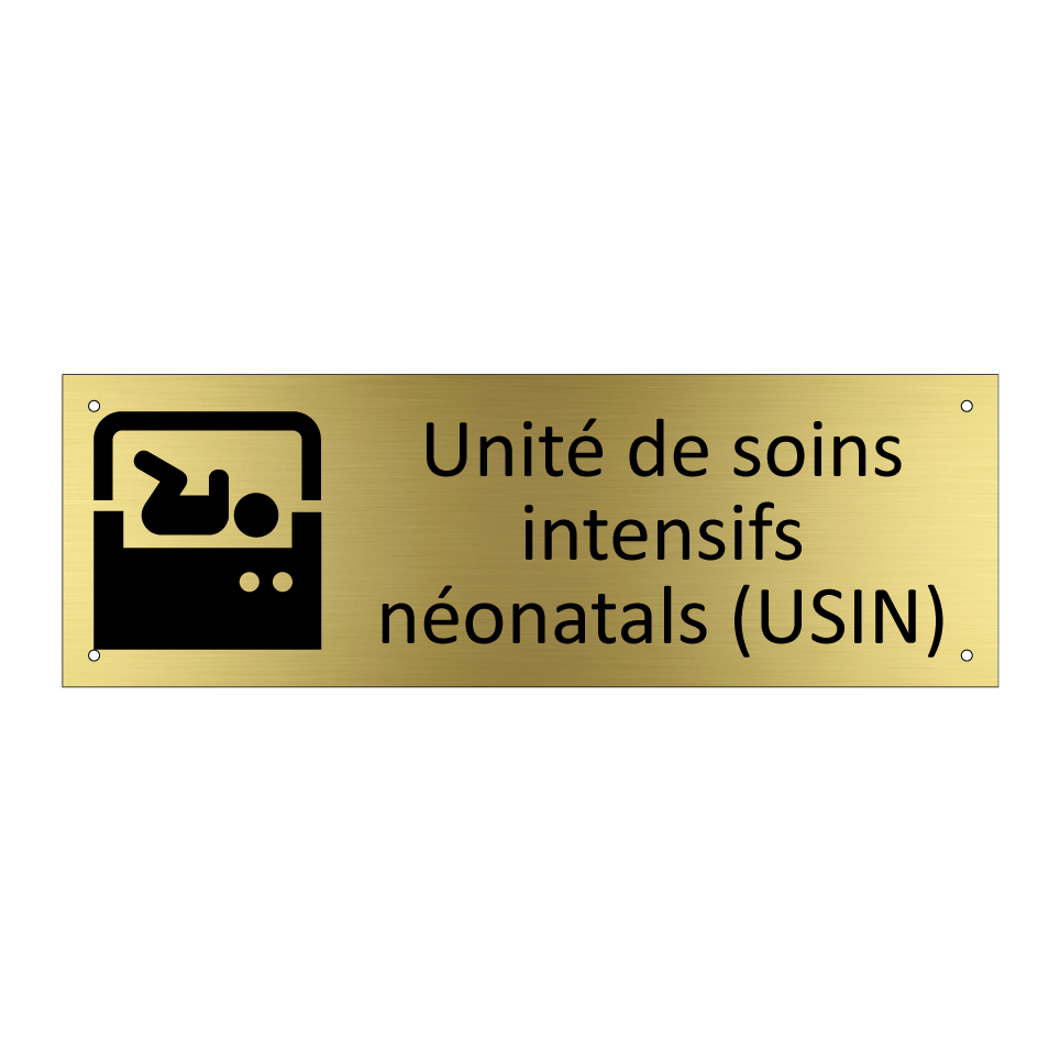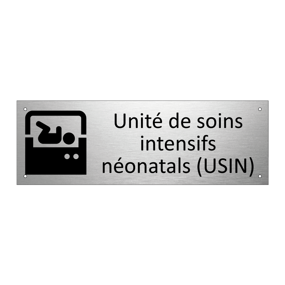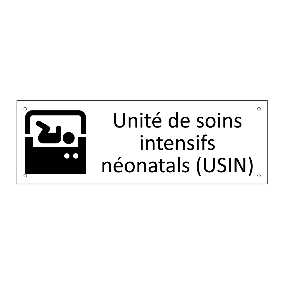 Panneau d'information avec le texte Unité de soins intensifs néonatals (USIN) et une symbolique claire pour une meilleure visibilité.