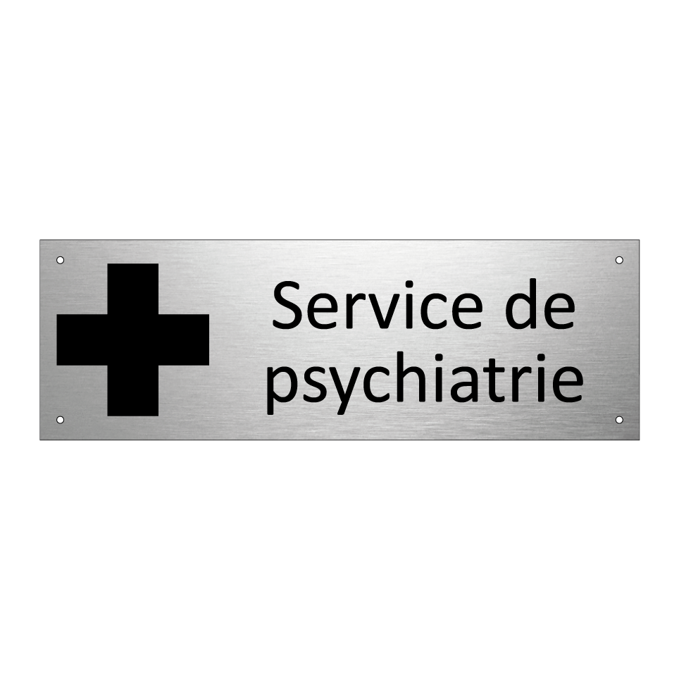 Panneau d'information avec le texte Service de psychiatrie et une symbolique claire pour une meilleure visibilité.