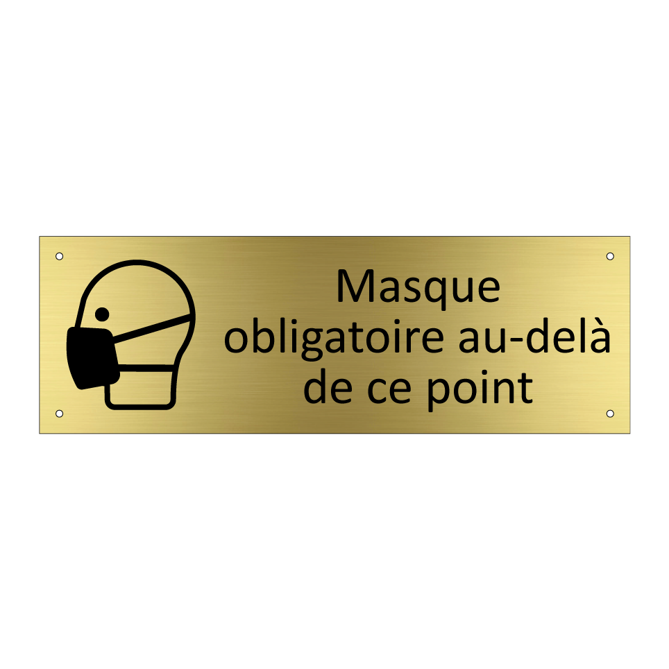 Panneau d'information avec le texte Masque obligatoire au-delà de ce point et une symbolique claire pour une meilleure visibilité.