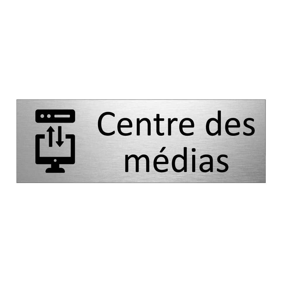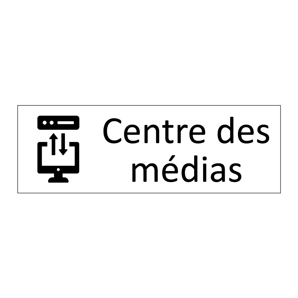 Panneau d'information avec le texte Centre des médias et une symbolique claire pour une meilleure visibilité.