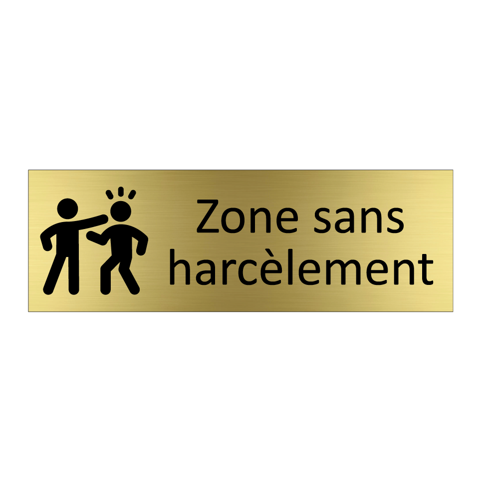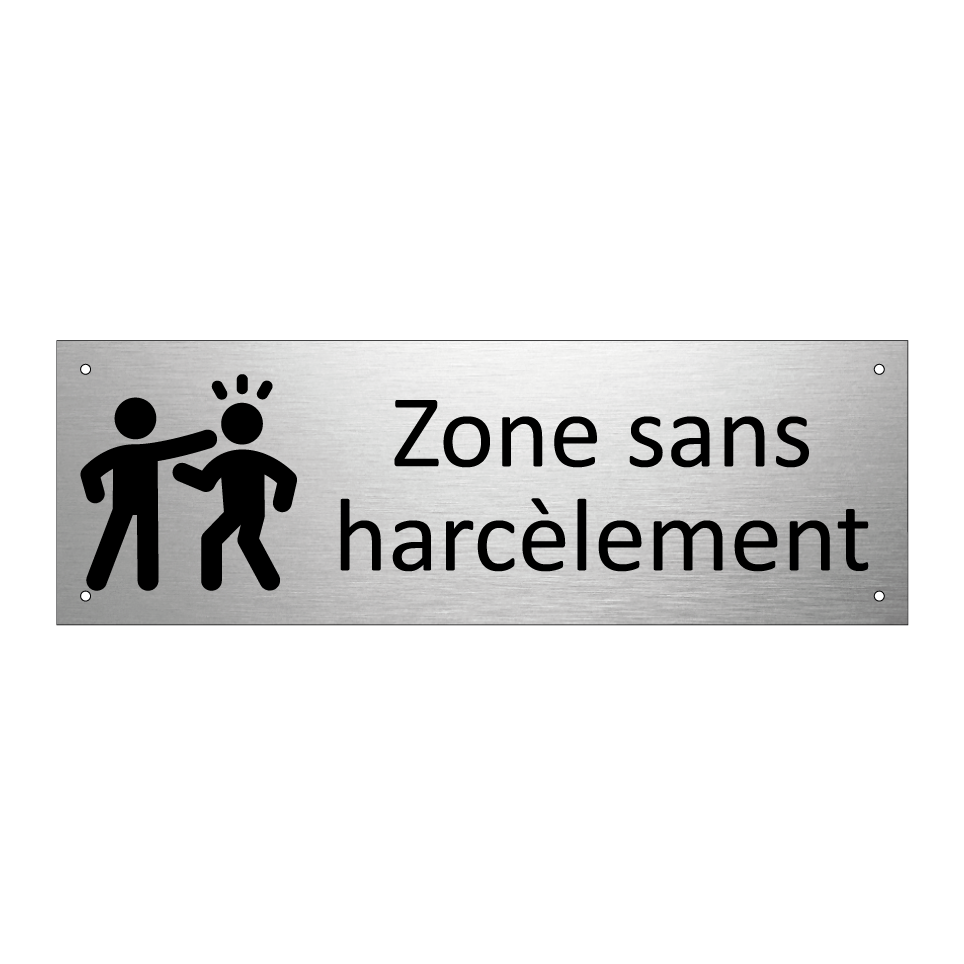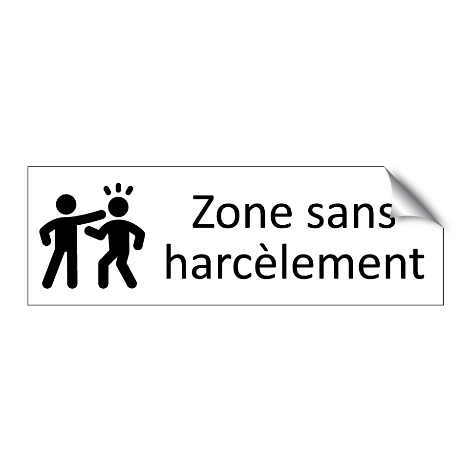 Panneau d'information avec le texte Zone sans harcèlement et une symbolique claire pour une meilleure visibilité.