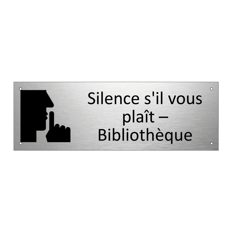Panneau d'information avec le texte Silence s'il vous plaît – Bibliothèque et une symbolique claire pour une meilleure visibilité.